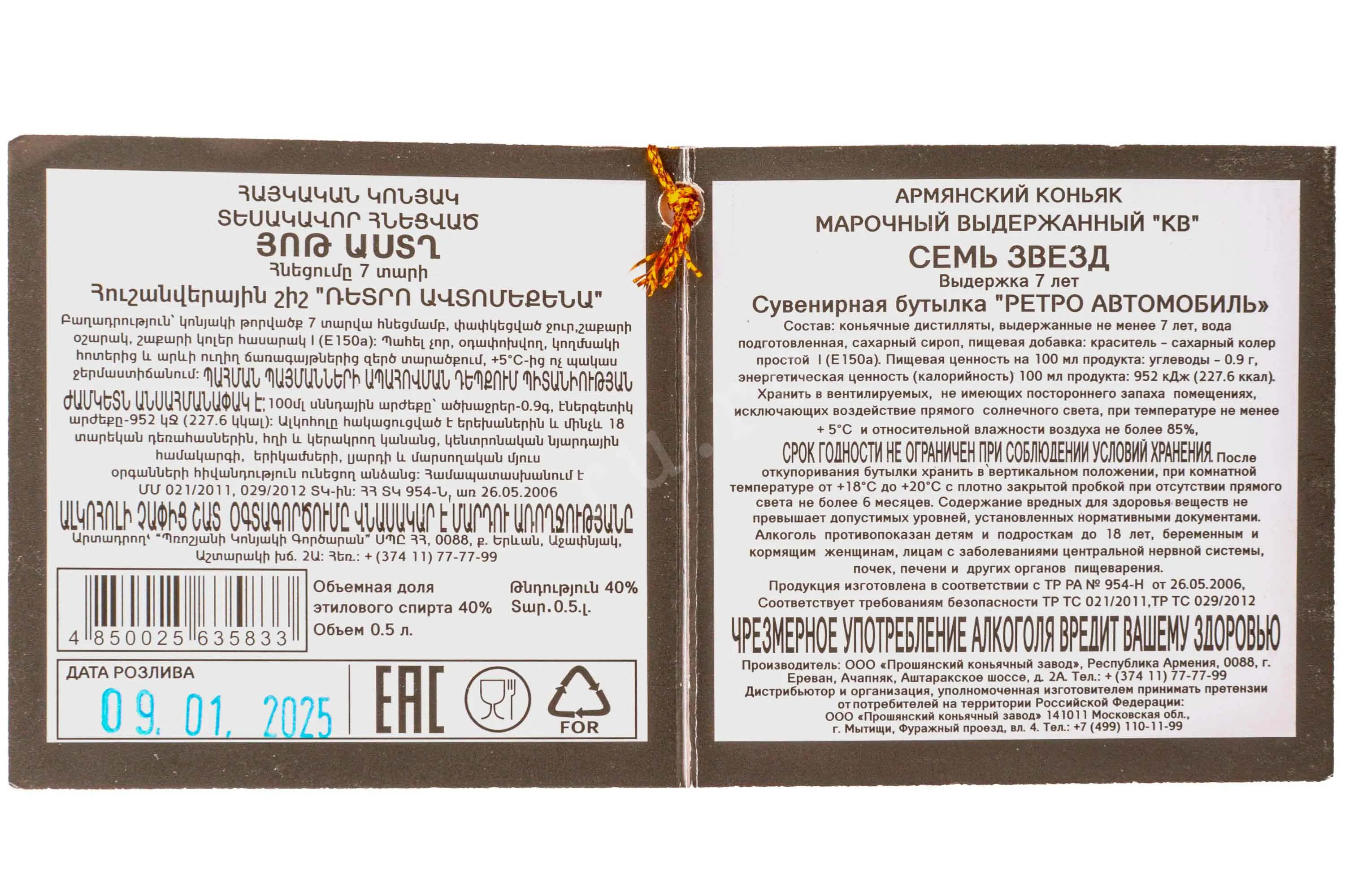 Ретро автомобиль КВ 7 лет в подарочной упаковке 0.5 л купить Армянский коньяк Retro Car 7 years old gift box цена в магазине КРЮ ПРОФИ г. Москва, ул. Профсоюзная, д. 16/10 10:00-22:00 Ежедневно +7 (495) 920-20-02 info@cru.ru