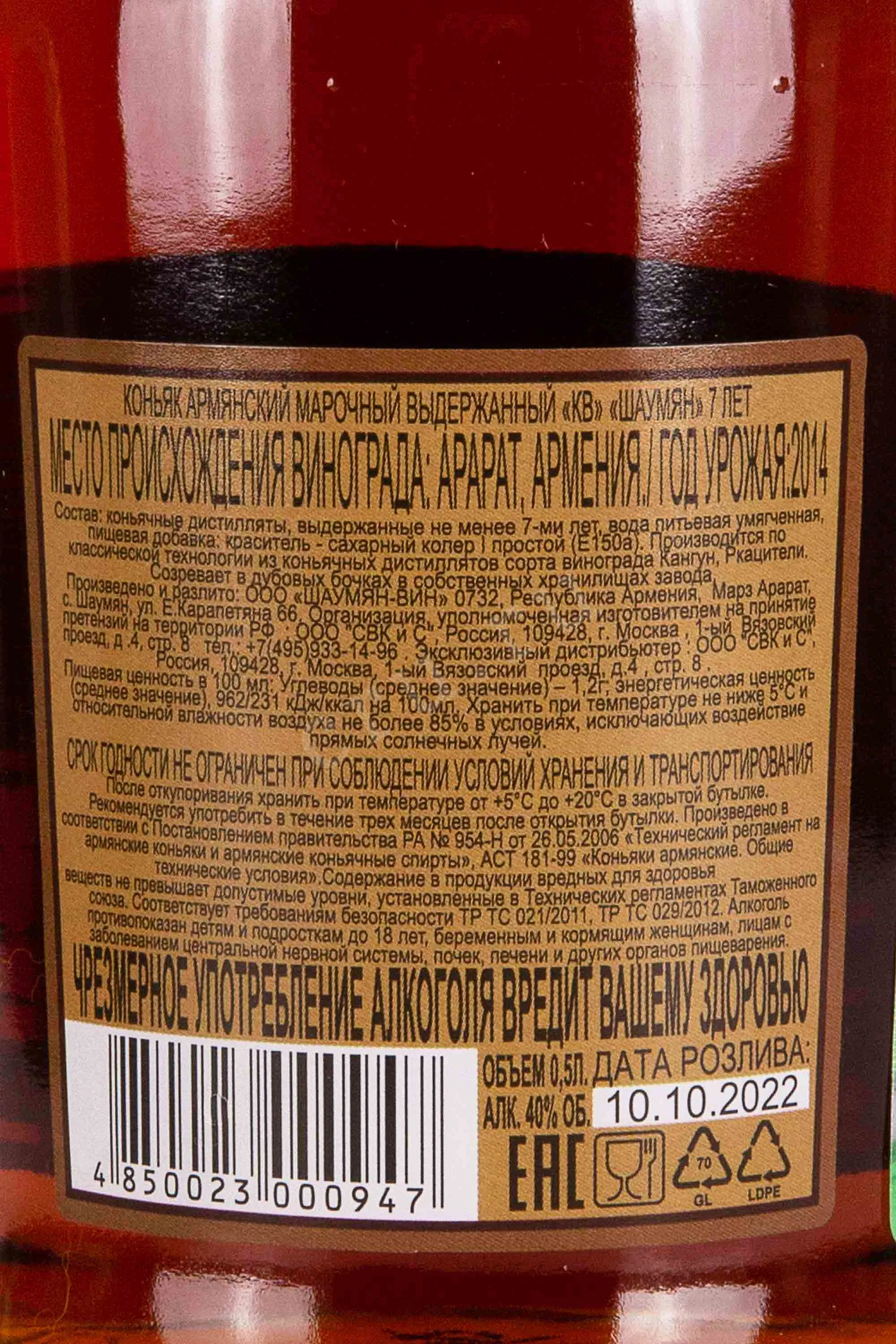 Шаумян 7 лет 0.5 л купить Армянский коньяк Shahumyan 7 years цена в магазине КРЮ ПРОФИ г. Москва, ул. Профсоюзная, д. 16/10 10:00-22:00 Ежедневно +7 (495) 920-20-02 info@cru.ru