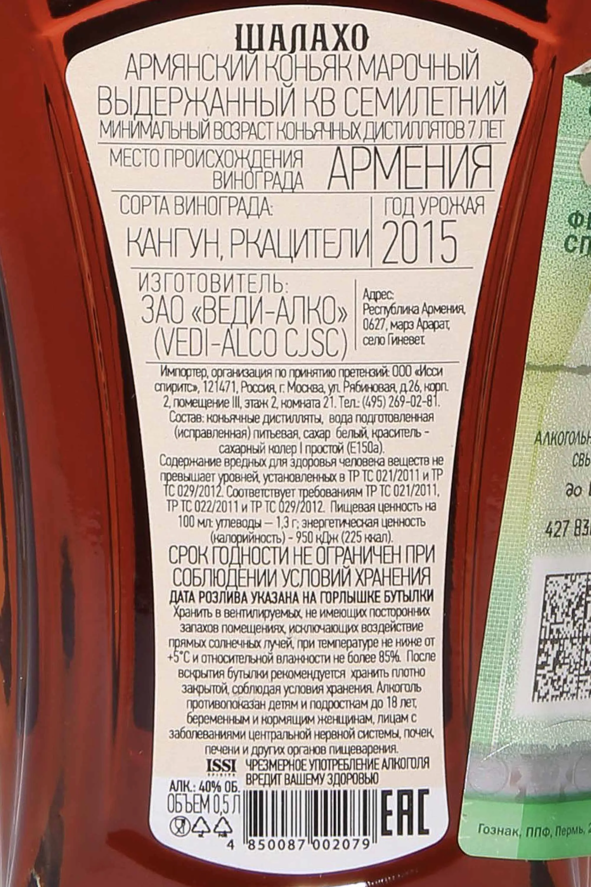 Шалахо 7 лет 0.5 л купить Армянский коньяк Shalaho 7 Years Old цена в магазине КРЮ ПРОФИ г. Москва, ул. Профсоюзная, д. 16/10 10:00-22:00 Ежедневно +7 (495) 920-20-02 info@cru.ru