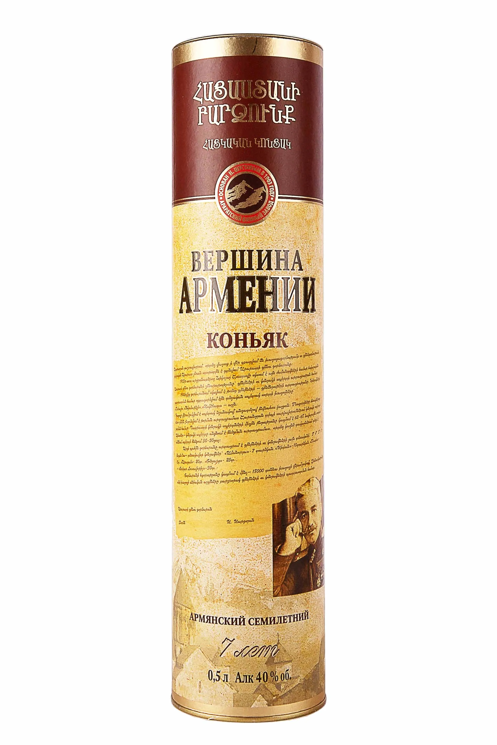 Коньяк Вершина Армении 7 лет в тубе 0.5 л