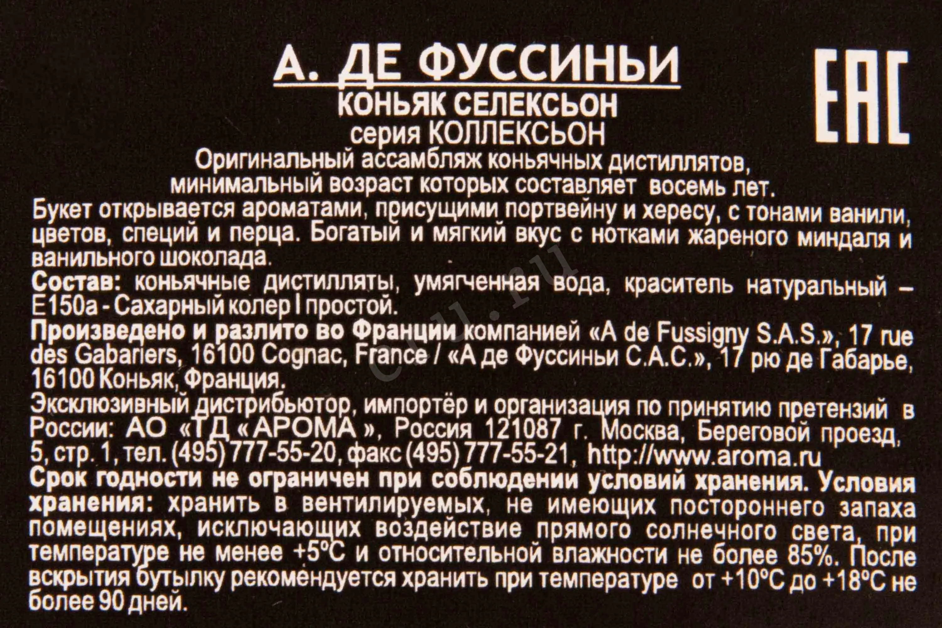 A de Fussigny Selection 8 years 0.05 л купить коньяк А де Фуссиньи Селексьон 8 лет цена в магазине КРЮ ПРОФИ