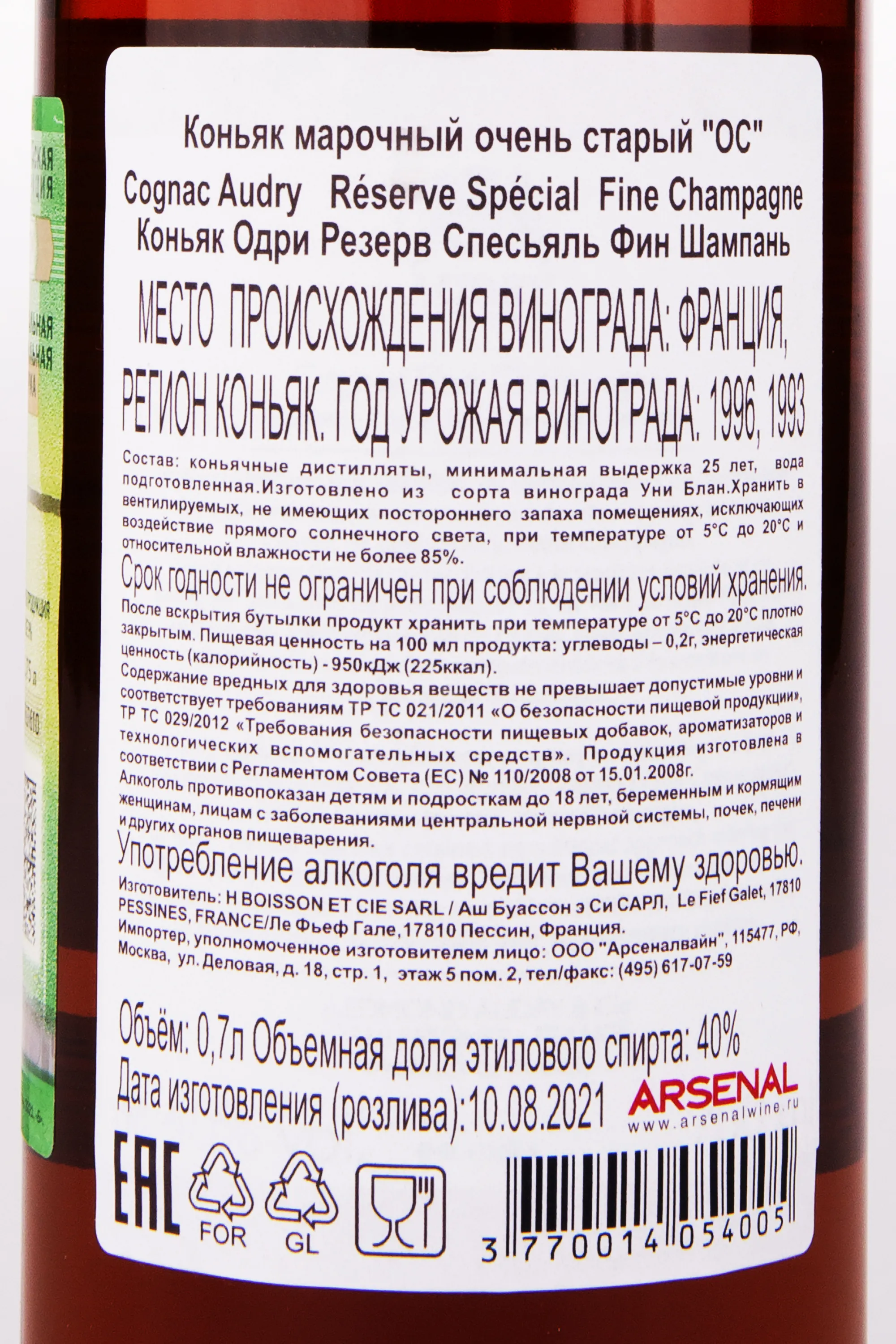 Коньяк Audry Reserve Speciale 0.7 л производится лучшими французскими мастерами купажа дома Одри. Для создания используются отборные сорта винограда. Высококачественные коньячные спирты из регионов Гран Шампань и Пти Шампань выдерживаются в бочонках из натурального дуба от 5 до 17 лет. Коньяк поставляется в элегантной сувенирной упаковке, станет отличным презентом на все случаи жизни.
