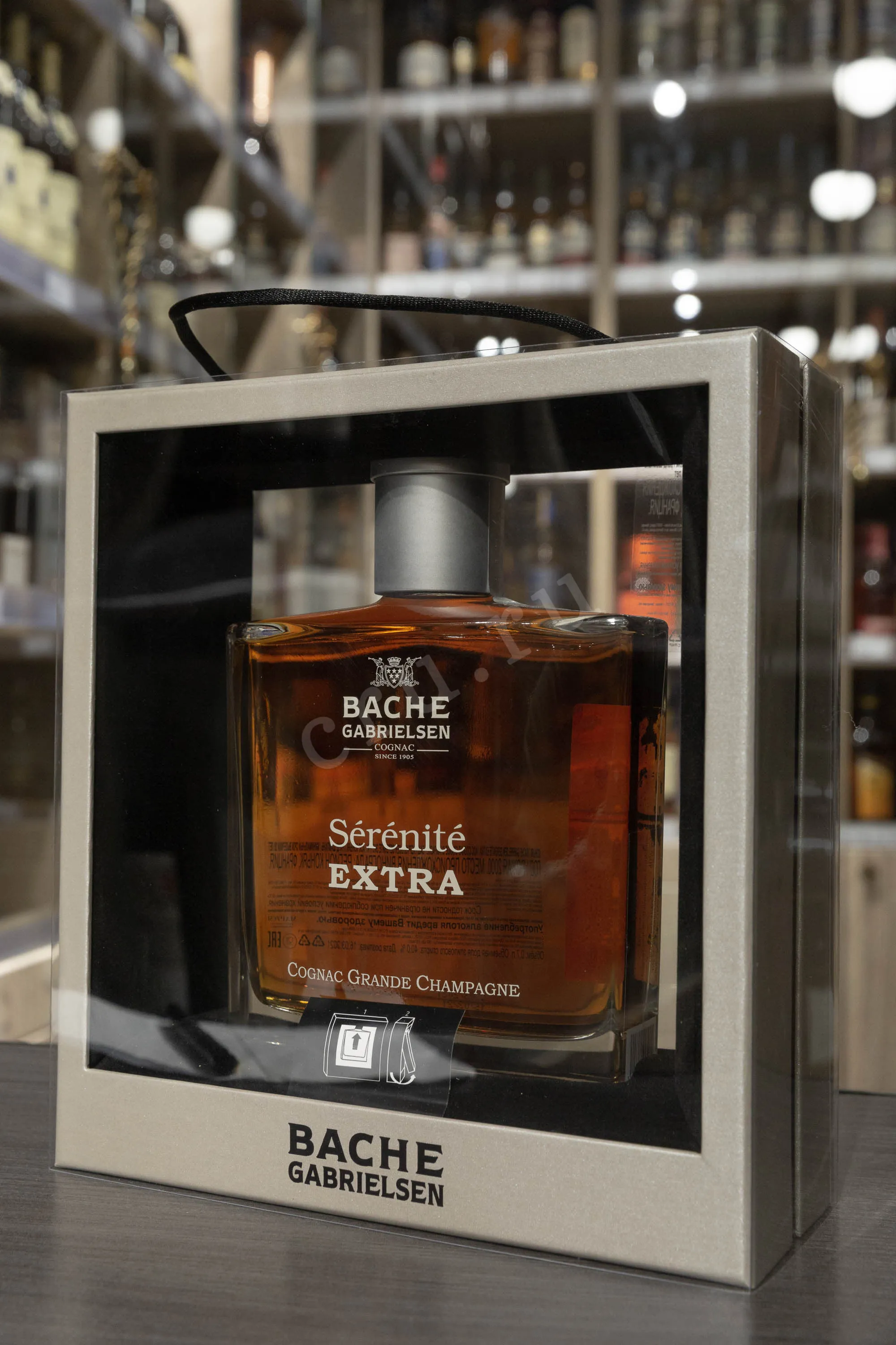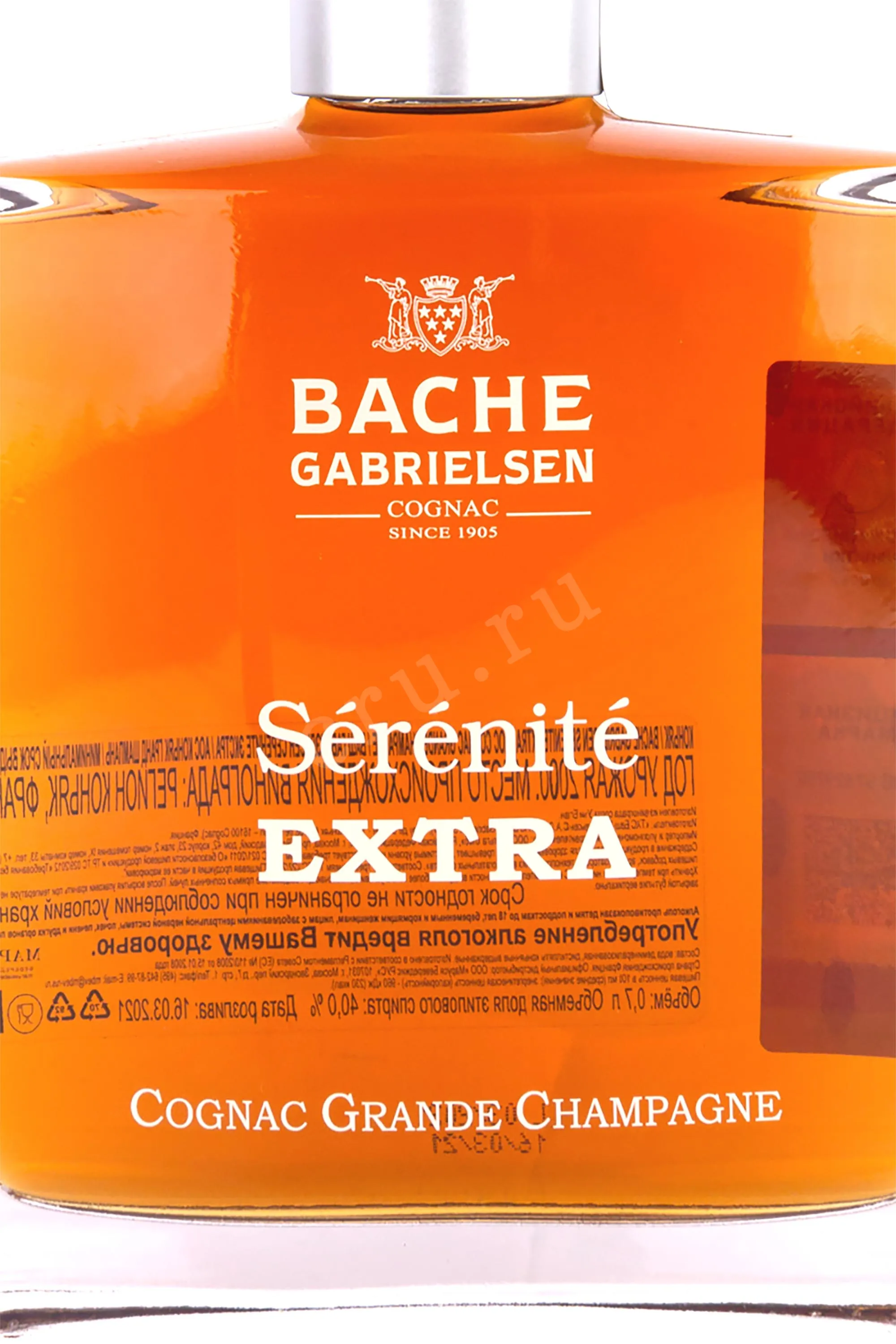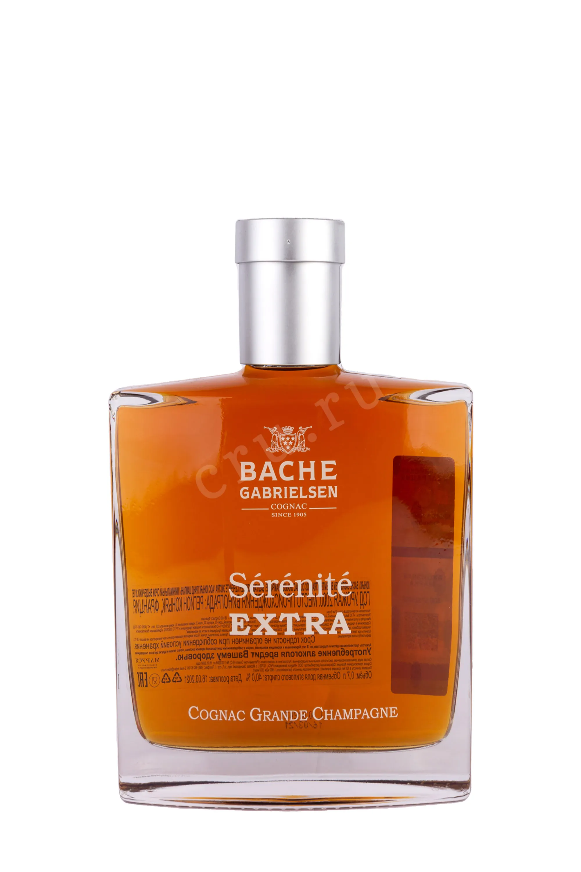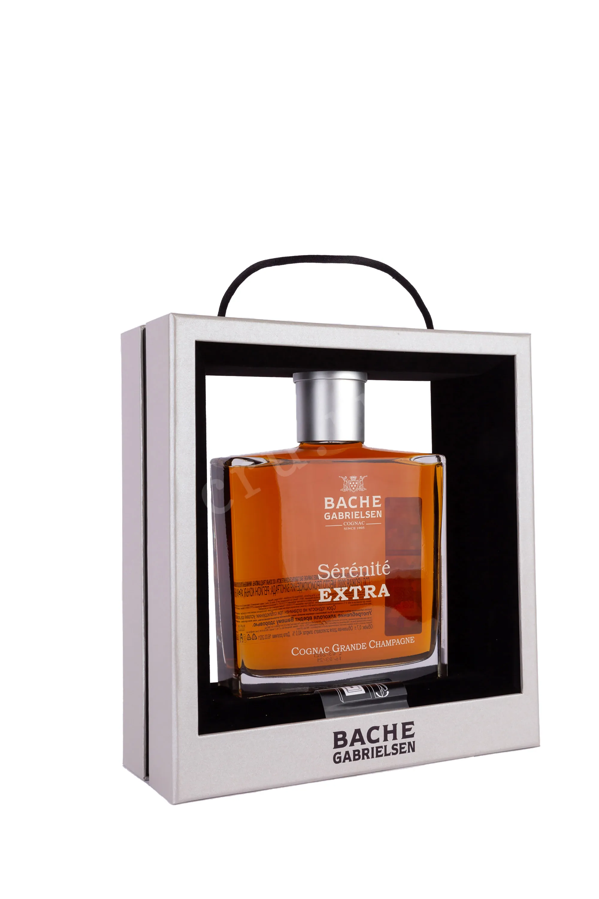 Коньяк Bache-Gabrielsen Serenite Extra 0.7 л производится из лучших сортов местного винограда, произрастающих в знаменитом субрегионе Гран Шампань. Купаж собран из отборных коньячных спиртов высочайшего качества, выдержка которых проходит в бочонках из натурального лимузенского дуба на протяжении 30-50 лет, в специальных погребах коньячного дома Баш–Габриэльсен. Благодаря уникальному расположению вблизи реки Шаранта, cognac приобретает удивительные вкусоароматические особенности. Название в переводе с французского обозначает «спокойствие и безмятежность». В 2012 году на международном конкурсе International Wine & Spirits Competition в Гонконге напиток был признан лучшим. Поставляется в элегантном графине и стильной сувенирной упаковке, станет роскошным подарком.