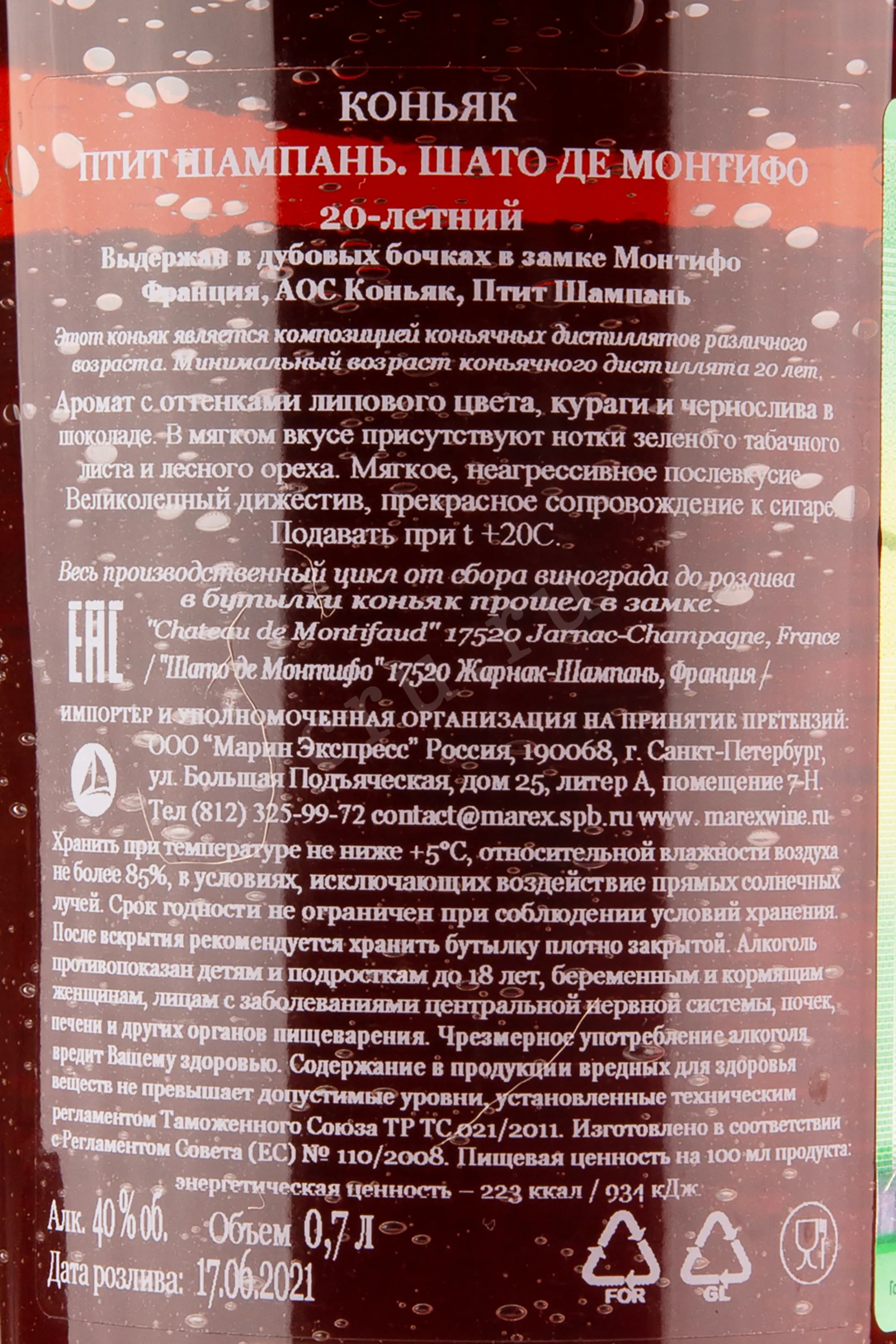 Коньяк Chateau de Montifaud 20 Years Old Fine Petite Champagne, wooden box 0.7 л – выдержанный французский cognac, который производится французской коньячной компанией Шато де Монтифо из отборного винограда, произрастающего в субрегионе Пти Шампань. Процесс создания на каждом этапе тщательно контролируется для достижения высочайшего качества изготавливаемой продукции. Купаж коньячных спиртов длительное время выдерживается в бочонках из лимузенского дуба на протяжении 20 лет, в подвалах семейного замка Монтифо. Премиальный cognac поставляется в деревянной коробке, станет роскошным подарком на фарфоровую свадьбу и на любое торжество.