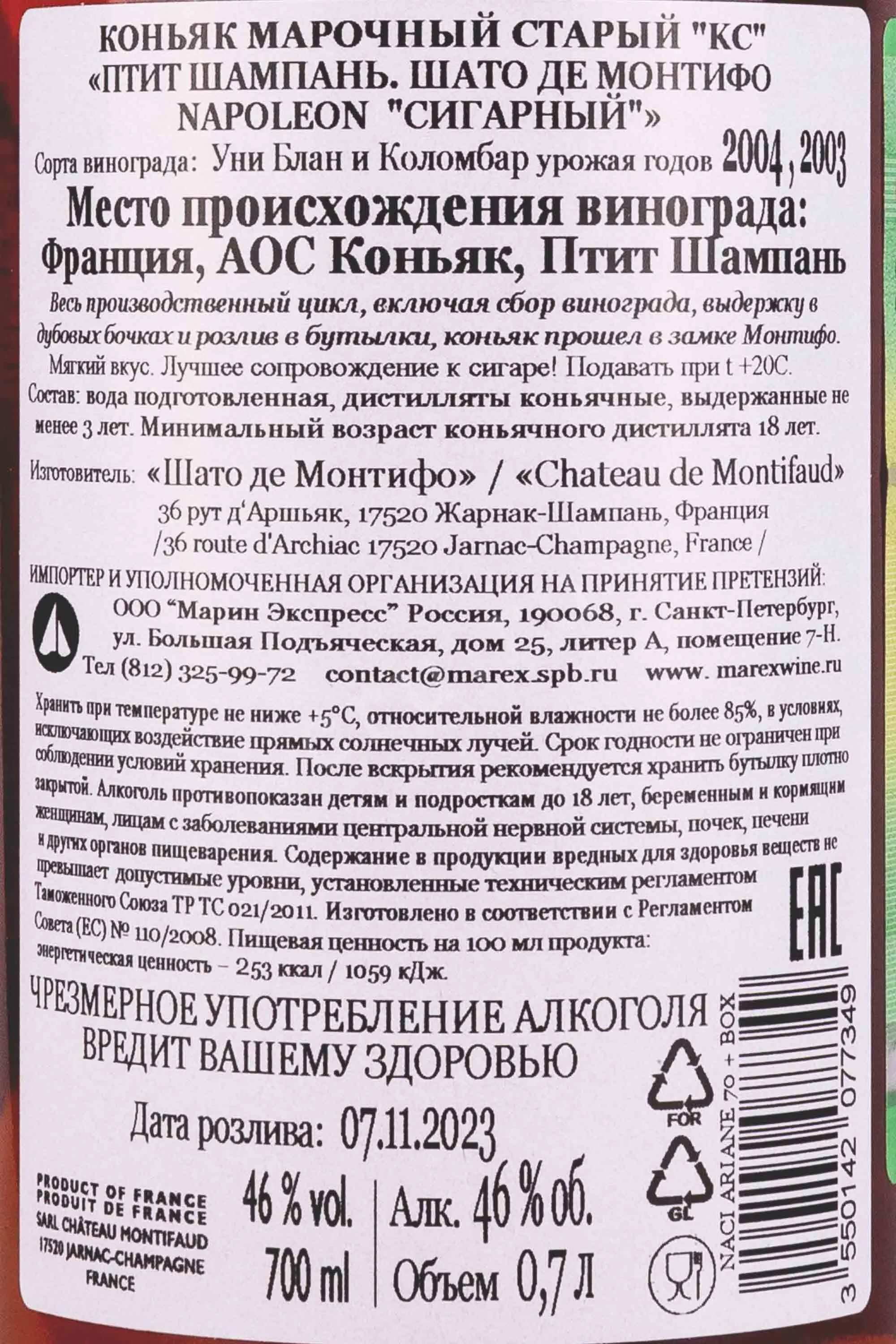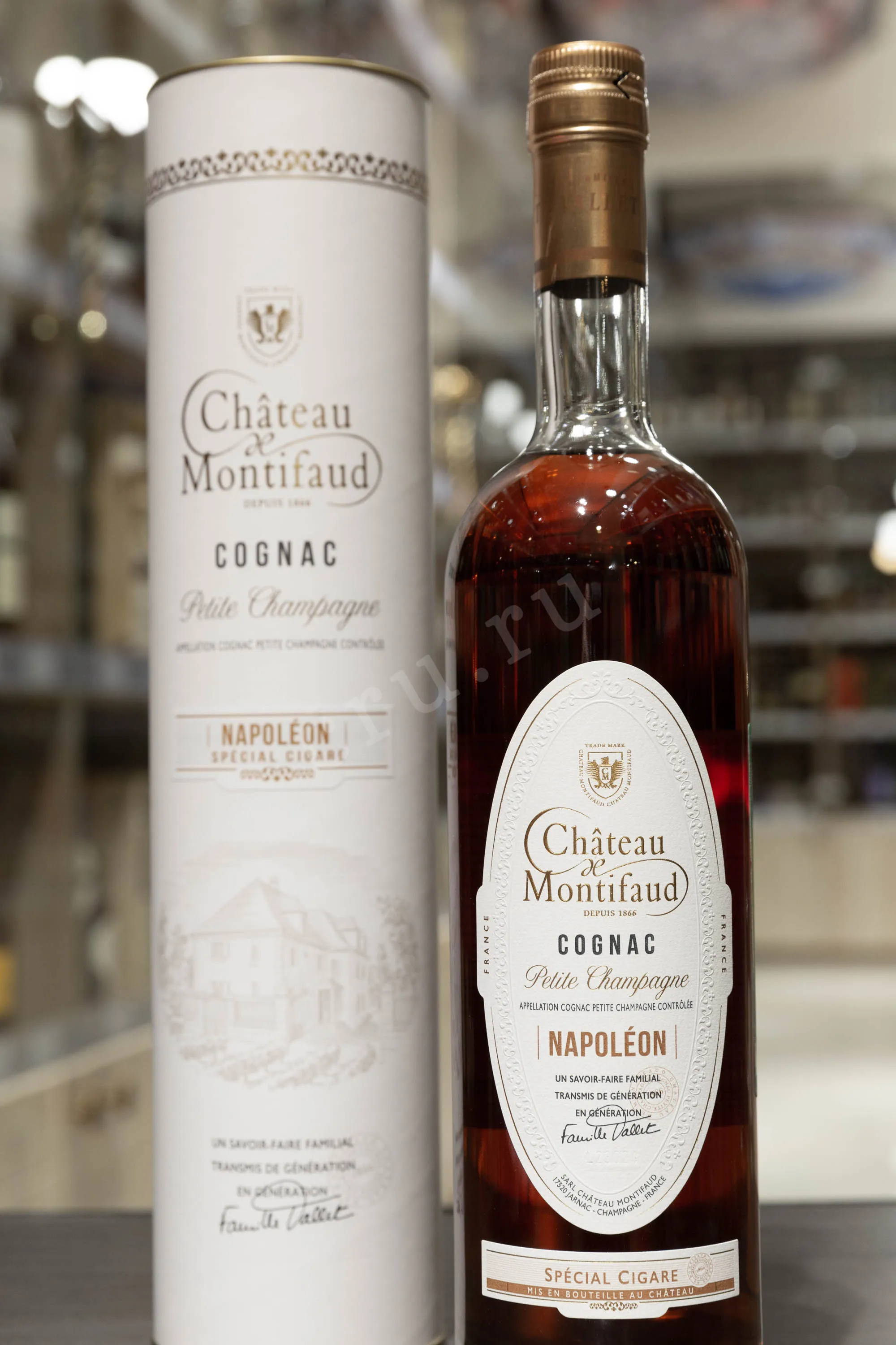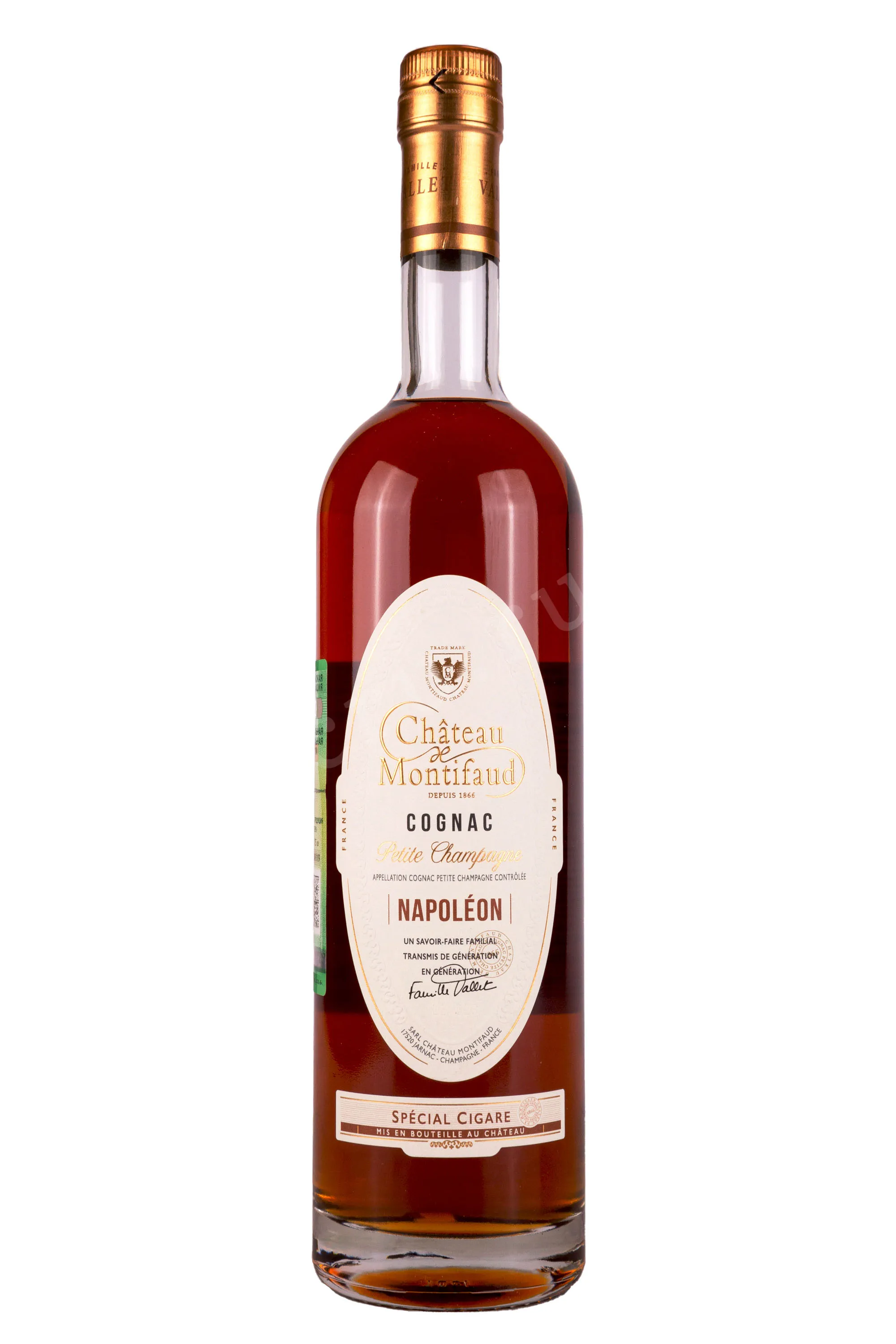 Коньяк Chateau de Montifaud Napoleon Cigar Petite Champagne 0.7 л – изысканный французский cognac премиум-класса, который производится по традиционной технологии старинной коньячной компанией Шато де Монтифо, которая принадлежит семье Валле. Изготавливается из лучших сортов местного винограда, выращенного в субрегионе Пти Шампань. Отборные коньячные дистилляты проходят длительную выдержку в бочонках из лимузенского дуба на протяжении 18 лет, в стенах фамильного замка Монтифо. Весь процесс создания коньяка тщательно контролируется и проверяется для соответствия высоким стандартам качества категории Наполеон. Станет отличным подарком для ценителя крепкого французского алкоголя и сигар.