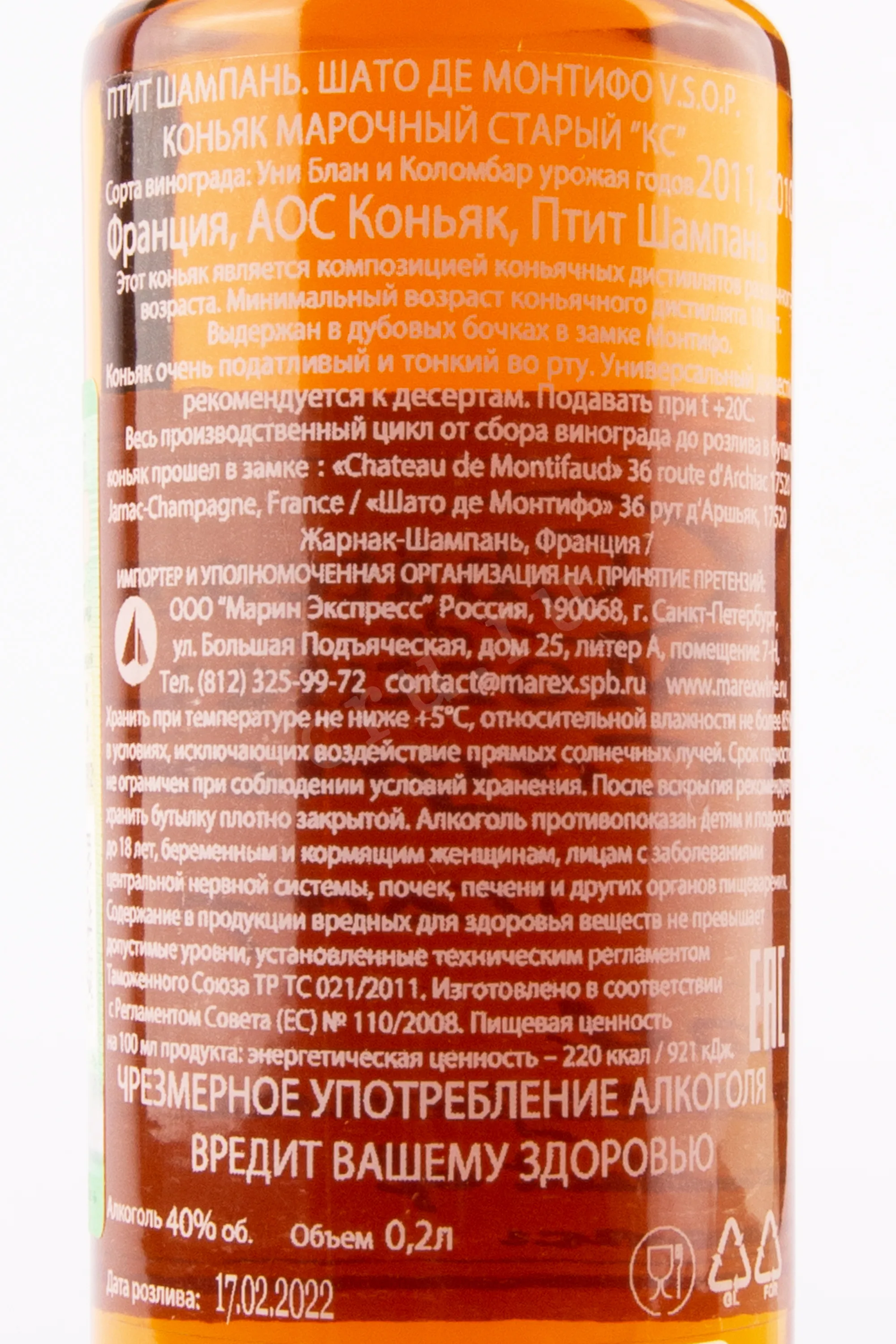 Коньяк Chateau de Montifaud VSOP in gift box 0.5 л – изысканный французский cognac, который изготавливается лучшими мастерами-купажистами из премиальных сортов местного винограда, собранных в субрегионе Пти Шампань. Ассамбляж высококачественных коньячных дистиллятов проходит выдержку в лимузенских дубовых бочонках на протяжении 10 лет, в подвалах семейного замка Монтифо. Коньяк поступает в элегантном декантере и красивой презентабельной упаковке, станет достойным подарком для ценителя крепкого французского алкоголя.