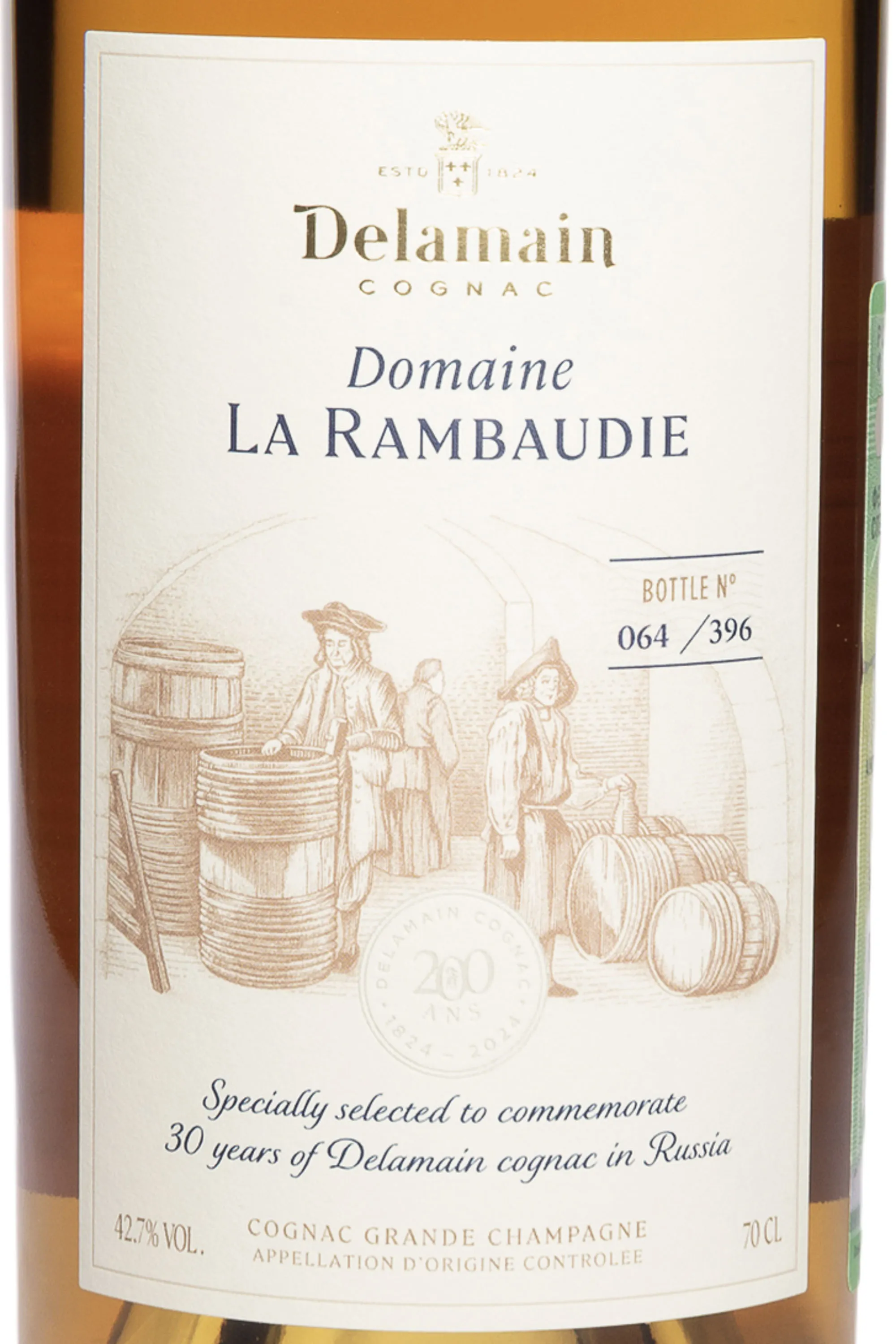 Коньяк Delamain Domaine La Rambaudie Grande Champagne в деревянной коробке 2014 года 0.7 л – редкий образец из винограда с одного виноградника. Сорт Уни Блан выращивается на участке Ла Рамбоди в коммуне Малавиль, в самом сердце апелласьона Гранд Шампань. Виноматериал из одного урожая перегнали в медных аламбиках и несколько девятилетий выдерживали в старой французской бочке объемом около 350 л, без подкрашивания и добавления сахара, поэтому стиль остался узнаваемым для дома Delamain: очень чистый, утонченный, с акцентом на терруар. Средний возраст спиртов в купаже — 30 лет, тираж всего 396 бутылок, каждая из них отражает уникальный характер конкретного участка и занимает особое место в линейке хозяйства как очень старый, живой и выразительный коньяк коллекционного уровня.