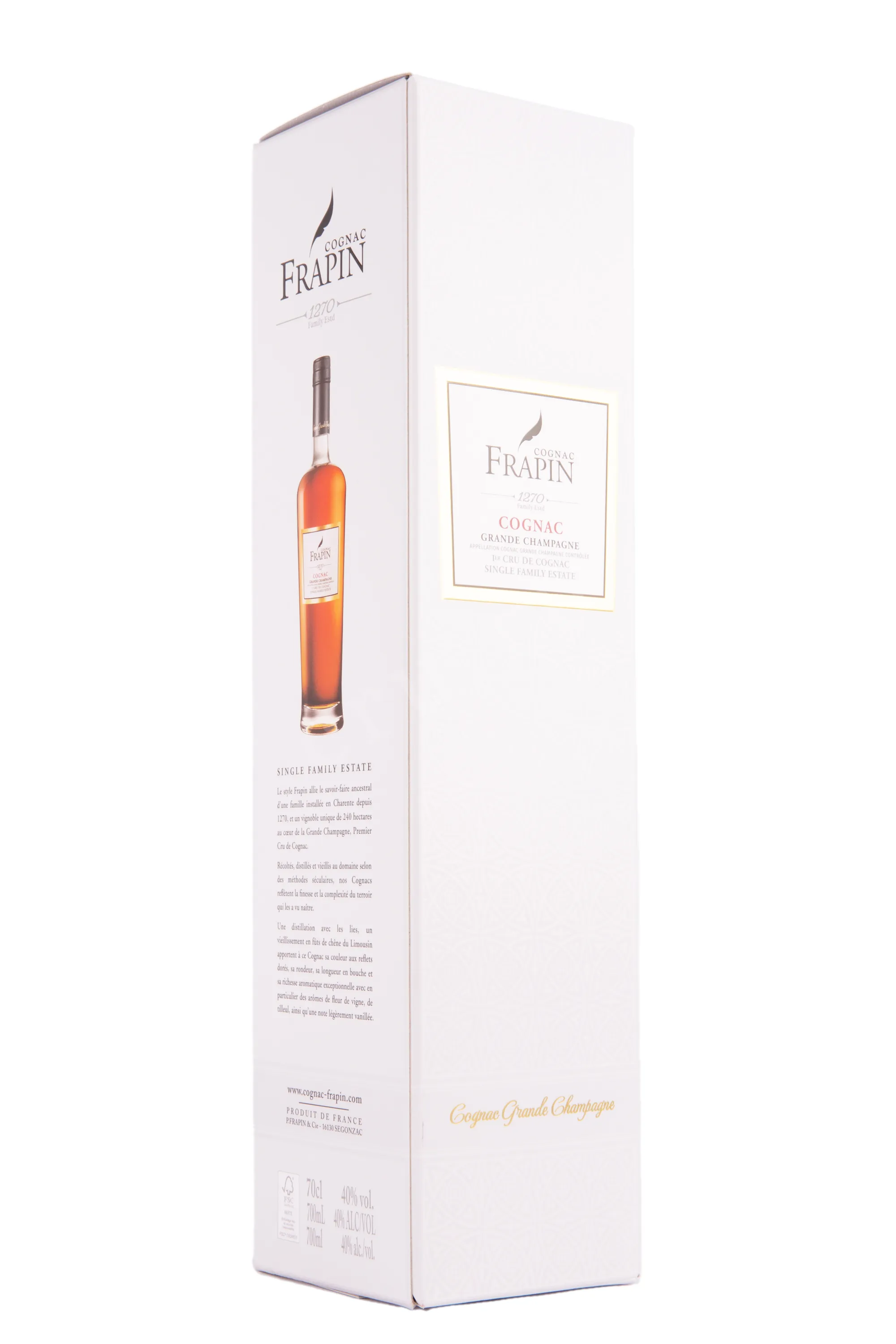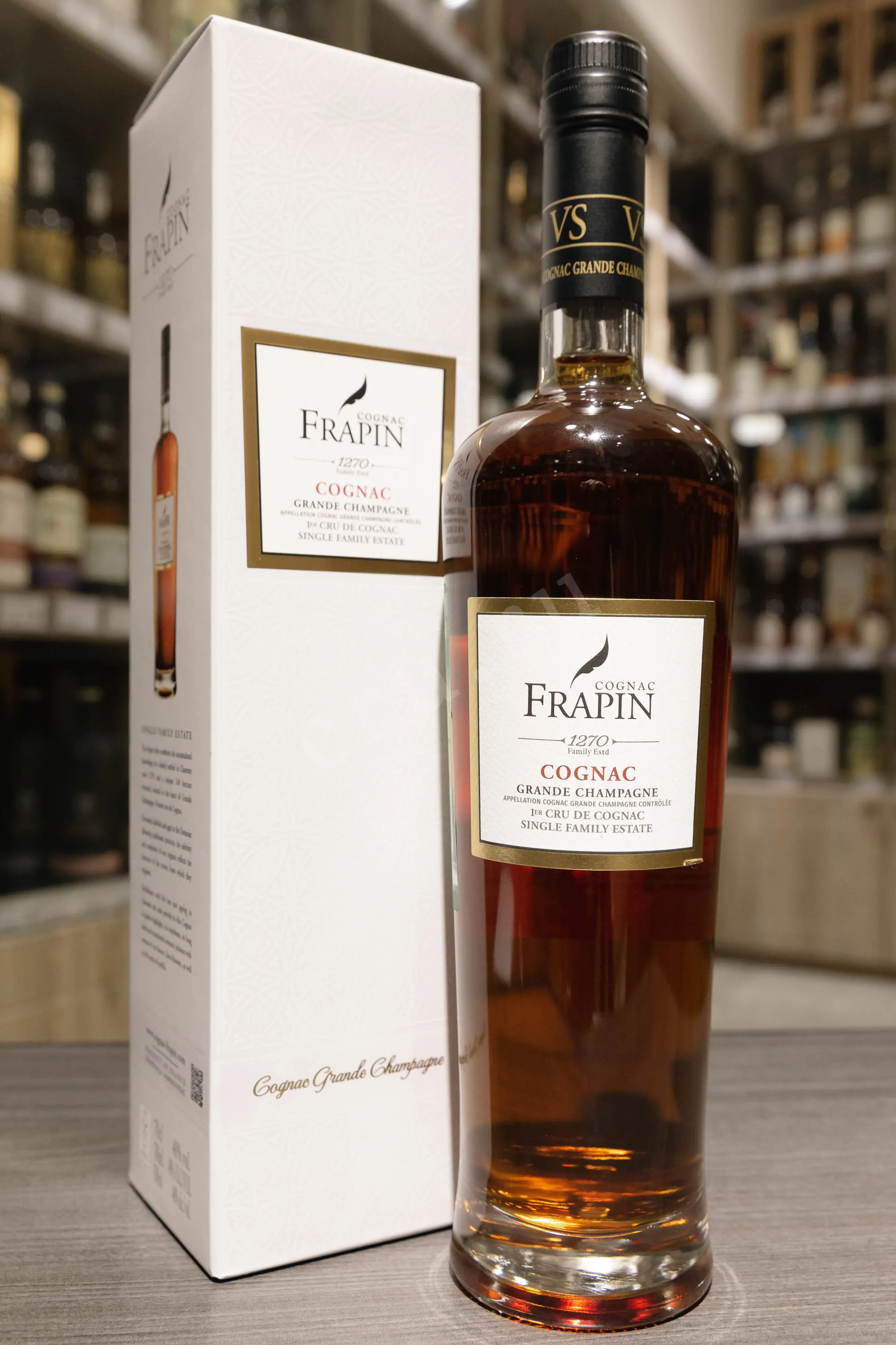 Коньяк Frapin VS 1270 Grande Champagne 0,7 л в п/у – элитный сорт спиртного от компании с долгой историей. Имя производителя находится на слуху с 1270 года. На протяжении столетий была выработана технология со своими секретами. Относится это и к данной вариации. Для производства напитка были использованы урожаи из провинции Гран Шампань, имеющей высокий статус в классификации коньячных апелласьонов. Сброженное из свежеотжатого виноградного сока сусло перегнали в медных кубах шарантского типа, после чего разлили по дубовым бочкам и оставили созревать в подвалах с контролируемыми показателями влажности и температуры воздуха. Коньяк выдерживался на протяжении как минимум трех лет. В подарочной картонной упаковке бутылка станет интересным презентом к празднику.