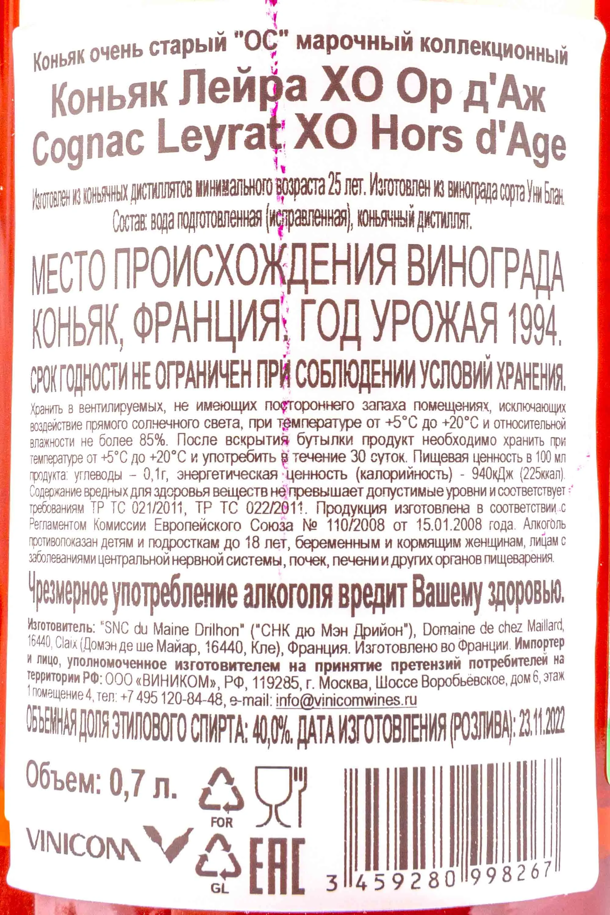 Французский коньяк по годам