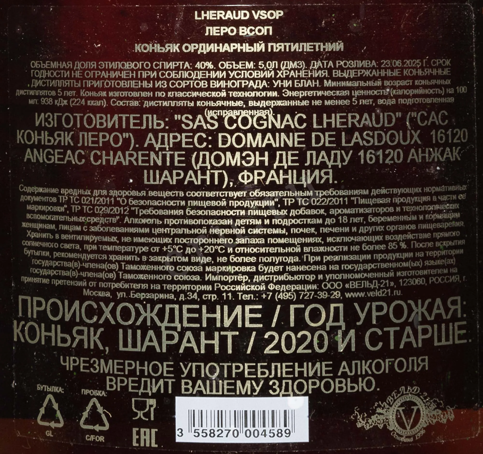 Коньяк Lheraud Petite Champagne VSOP в деревянной коробке 2020 5 л привлекает внимание внешней эстетикой и солидным объемом, что делает его подходящим кандидатом на роль статусного подарка. Спиртной напиток представляет собой купаж отборных спиртов из области Петит Шампань, известной высоким содержанием известняка в почве и устойчивой ароматикой выращиваемого здесь винограда. Коньяк был выдержан во французских дубовых бочках, что сформировало его мягкий профиль и глубокий вкус. Дом Леро использует традиционную перегонку в небольших медных аламбиках и медленное созревание в специально оборудованных подвалах. Фирменный коньяк отличается стабильным качеством и часто отмечается экспертами за чистоту стиля.