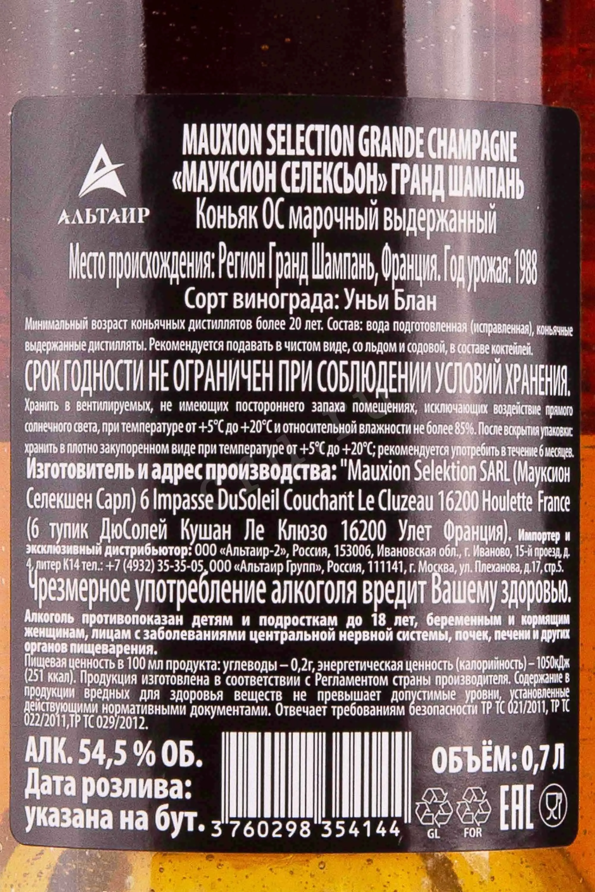 Мауксион Селексьон Гранд Шампань 1988 0.7
