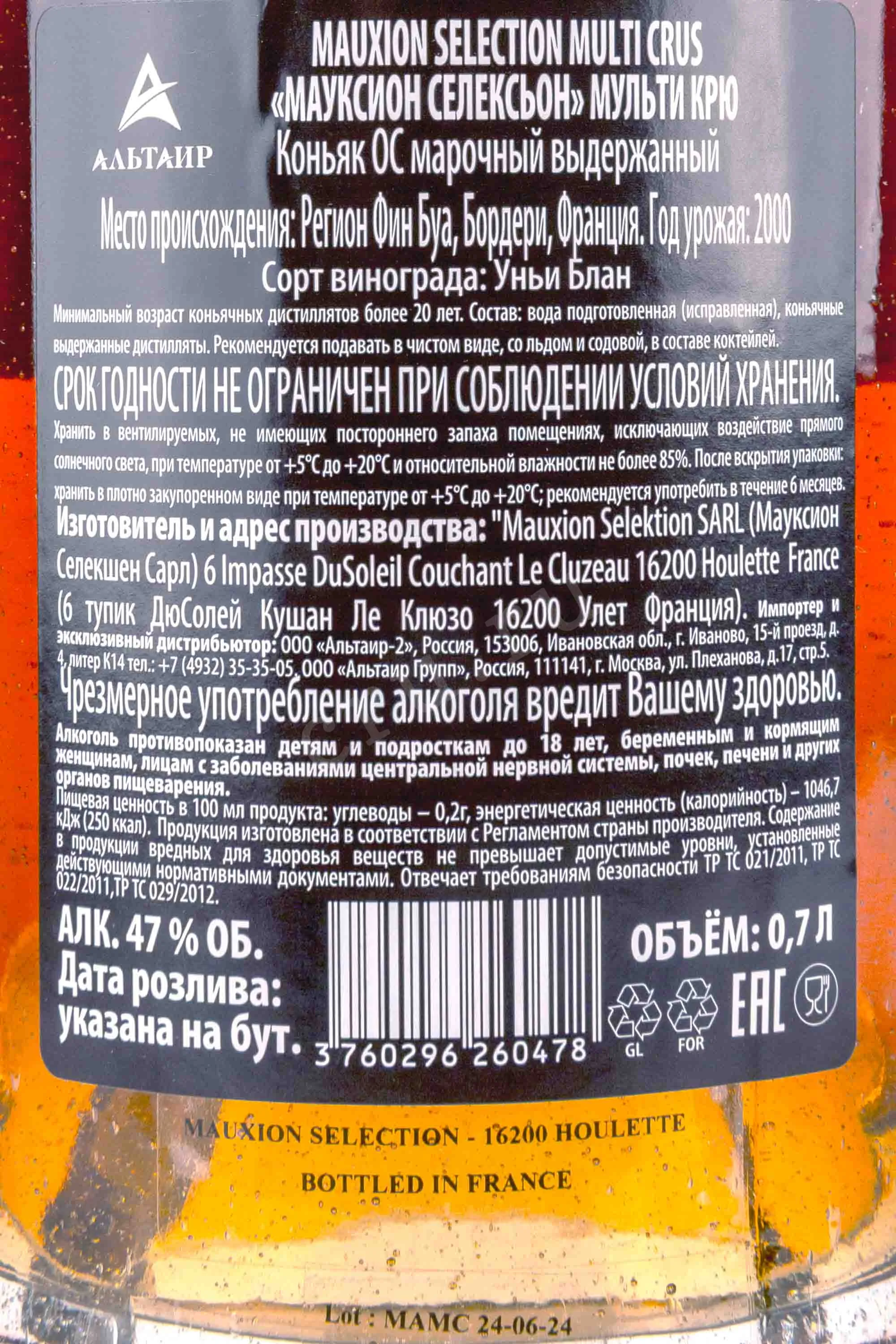Mauxion Selection Multi Crus in wooden box 0.7 л купить коньяк Мауксион Селексьон Мульти крю в деревянной упаковке цена в магазине КРЮ ПРОФИ г. Москва, ул. Профсоюзная, д. 16/10 10:00-22:00 Ежедневно +7 (495) 920-20-02 info@cru.ru