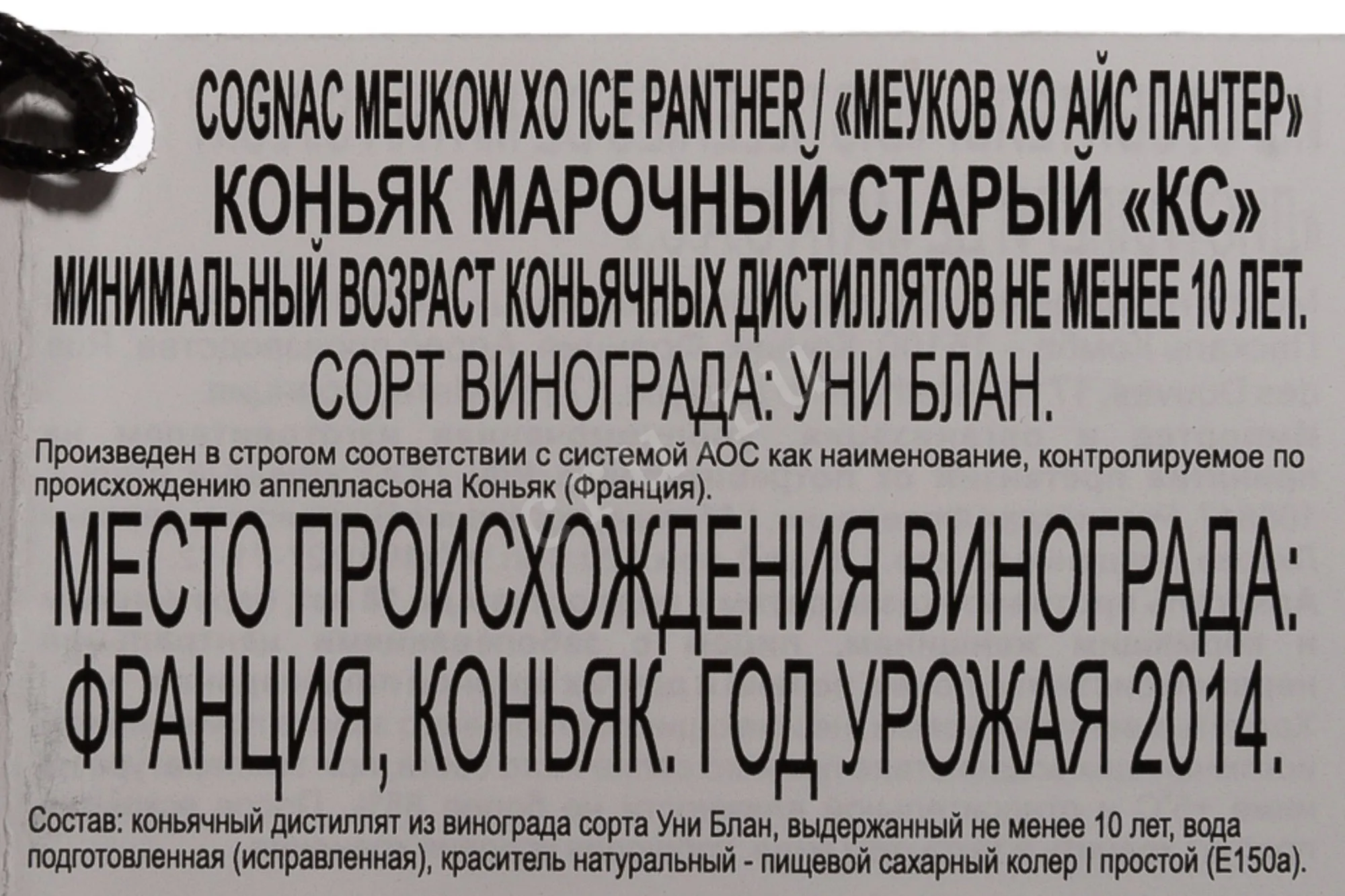 Коньяк Meukow XO Ice Panter в подарочной упаковке с двумя бокалами 2014 год 0.7 л — истинный представитель стиля дома Меуков. Купаж создаётся из отборных коньячных спиртов, полученных в Гран Шампани и Пти Шампани. Выдержка проходит в дубовых бочках в течение 20-25 лет, что формирует округлый и зрелый профиль. Версия Айс Пантер задумана как более универсальная, допускающая подачу со льдом без потери структуры. Коньяк разлит в элегантную белую матовую бутылку с изображением серебряной пантеры, напоминающим узор на морозном стекле. Напиток получил медаль на международном конкурсе International Vinalies Challenge, что подтверждает стабильное качество и признание профессионального сообщества. Подарочный формат с двумя бокалами подчёркивает статус и коллекционный характер релиза 2014 года.