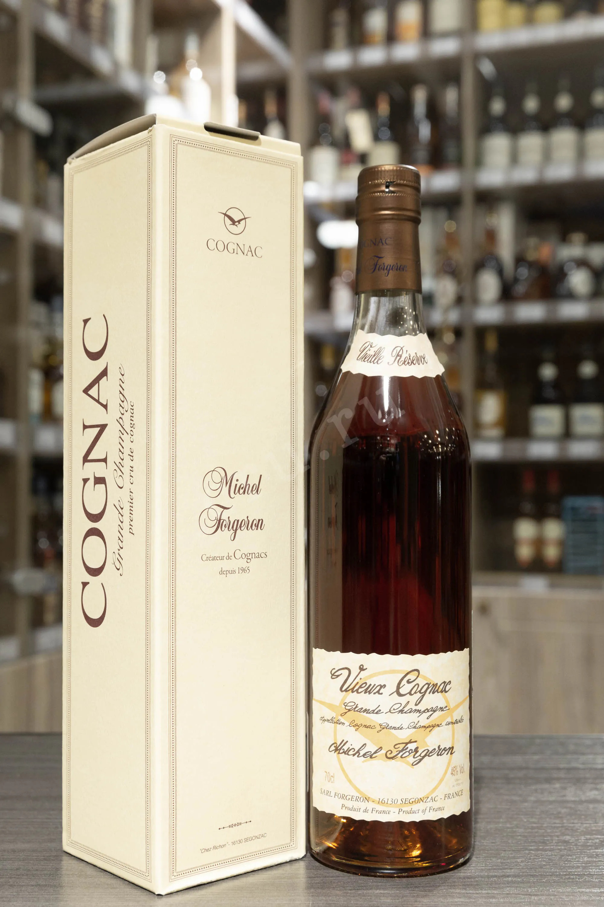 Коньяк Michel Forgeron Vieille Reserve 0,7 л в п/у — винтажный марочный сорт категории ОС (очень старый), созданный из винограда Уни Блан урожая 1990 года. Купаж был выпущен небольшой партией. В его состав вошли спирты, произведенные классическим способом (двойная дистилляция в медном шарантском кубе) и выдержанные минимум 30 лет в дубовой бочке. Сырье было выращено в престижном регионе Гран Шампань в провинции Коньяк. Элитный коньяк с крепостью выше стандарта (45%) упакован в изящную подарочную коробку и может быть выбран в качестве презента по особенно торжественному случаю.