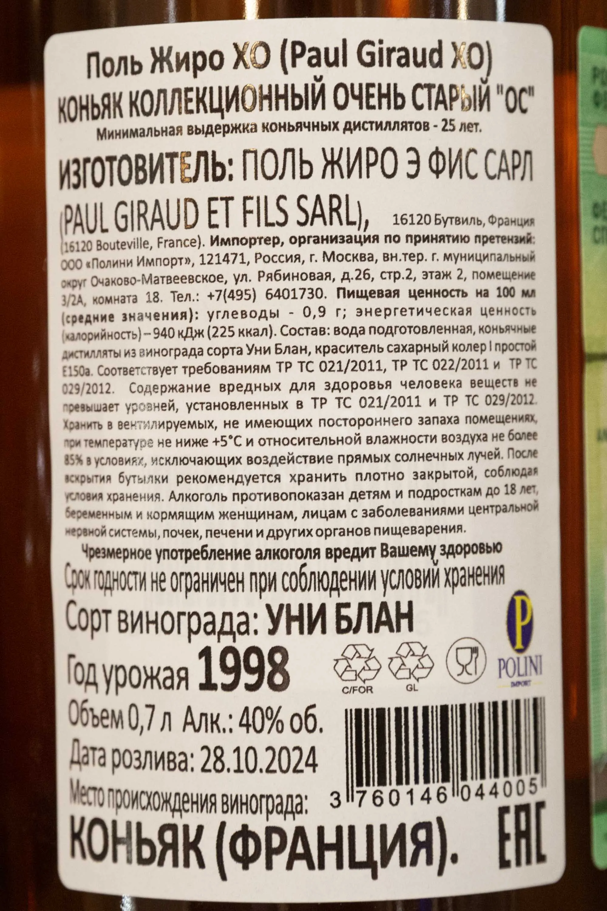 Коньяк Paul Giraud XO 25 years 0.7 л – напиток премиум-класса, который был создан стараниями лучших мастеров-купажистов известного коньячного дома Франции – Поль Жиро. Производится из отборного винограда, выращенного в субрегионе Гран Шампань. Купаж высококачественных коньячных спиртов долгое время выдерживается в специальных бочонках из лимузенского дуба на протяжении 25 лет, в особых влажных погребах компании. Премиальный коньяк продается в традиционной бутылке и стильной сувенирной упаковке, станет достойным подарком на серебряную свадьбу или на любое другое торжество.