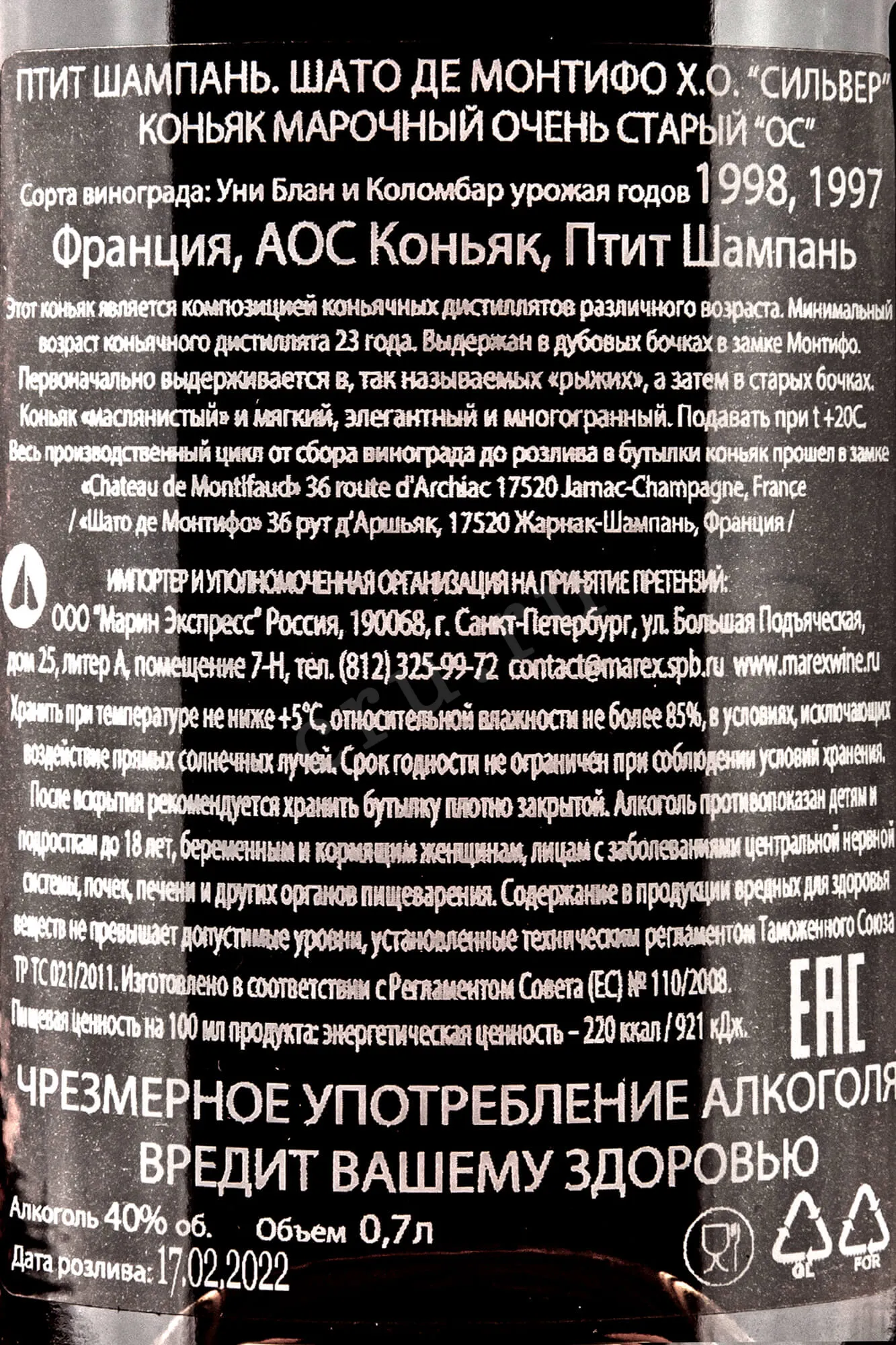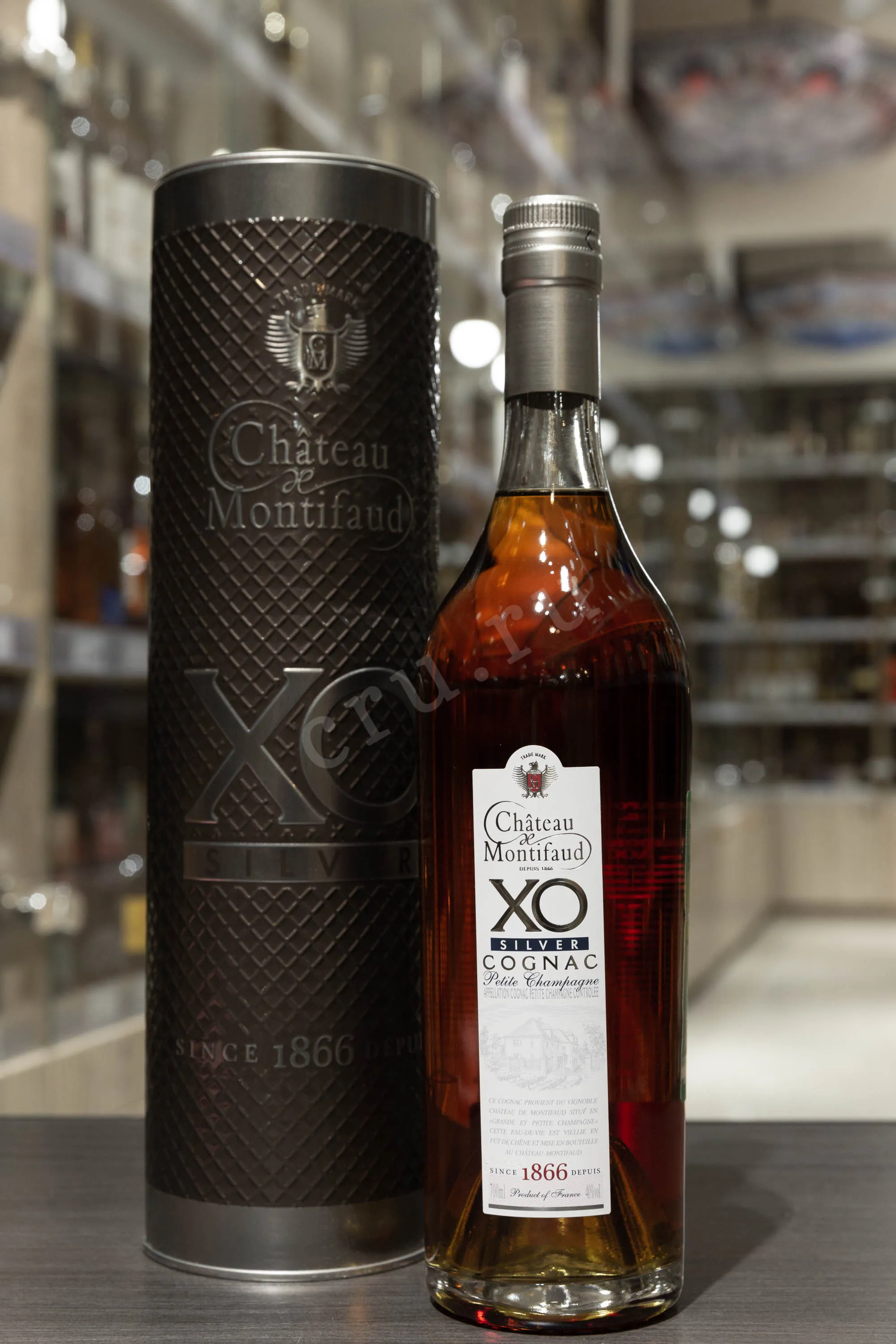 Коньяк Chateau de Montifaud XO Silver Petite Champagne 0,7 л в тубе изготовлен на основе бленда зрелых виноградных дистиллятов Пти Шампани. Не менее 23 лет спирты провели в дубовых бочках в подвалах замка Монтифо, которым владеет компания-производитель. После окончания выдержки напитки смешали под присмотром мастера купажа, разбавили умягченной водой до 40 градусов и бутилировали. Коньяк предлагается в бутылке, укомплектованной стильным металлическим боксом в форме фляги. Это солидный подарок, который можно вручить по особому поводу.