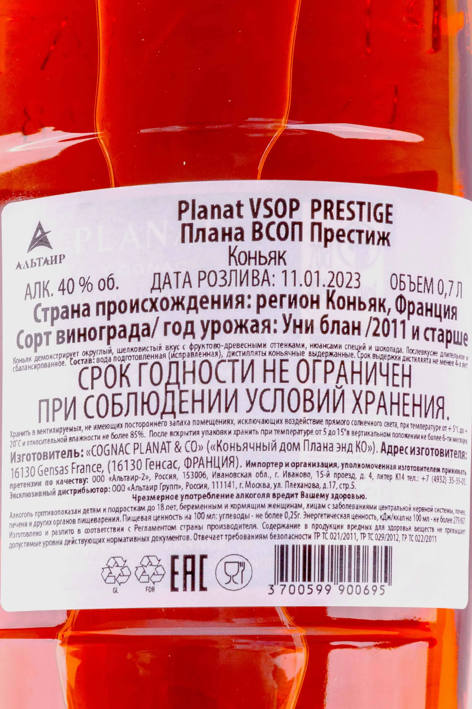 Коньяк Planat VSOP Prestige 0.7 л – изысканный французский cognac, создается коньячным домом Камю из местных сортов винограда. Отборные коньячные спирты собираются из регионов Гран Шампань, Бон Буа, Фэн Буа, Пти Шампань и выдерживаются в дубовых бочонках на протяжении 4 лет. Поставляется в элегантной сувенирной упаковке, станет превосходным подарком на все случаи жизни.