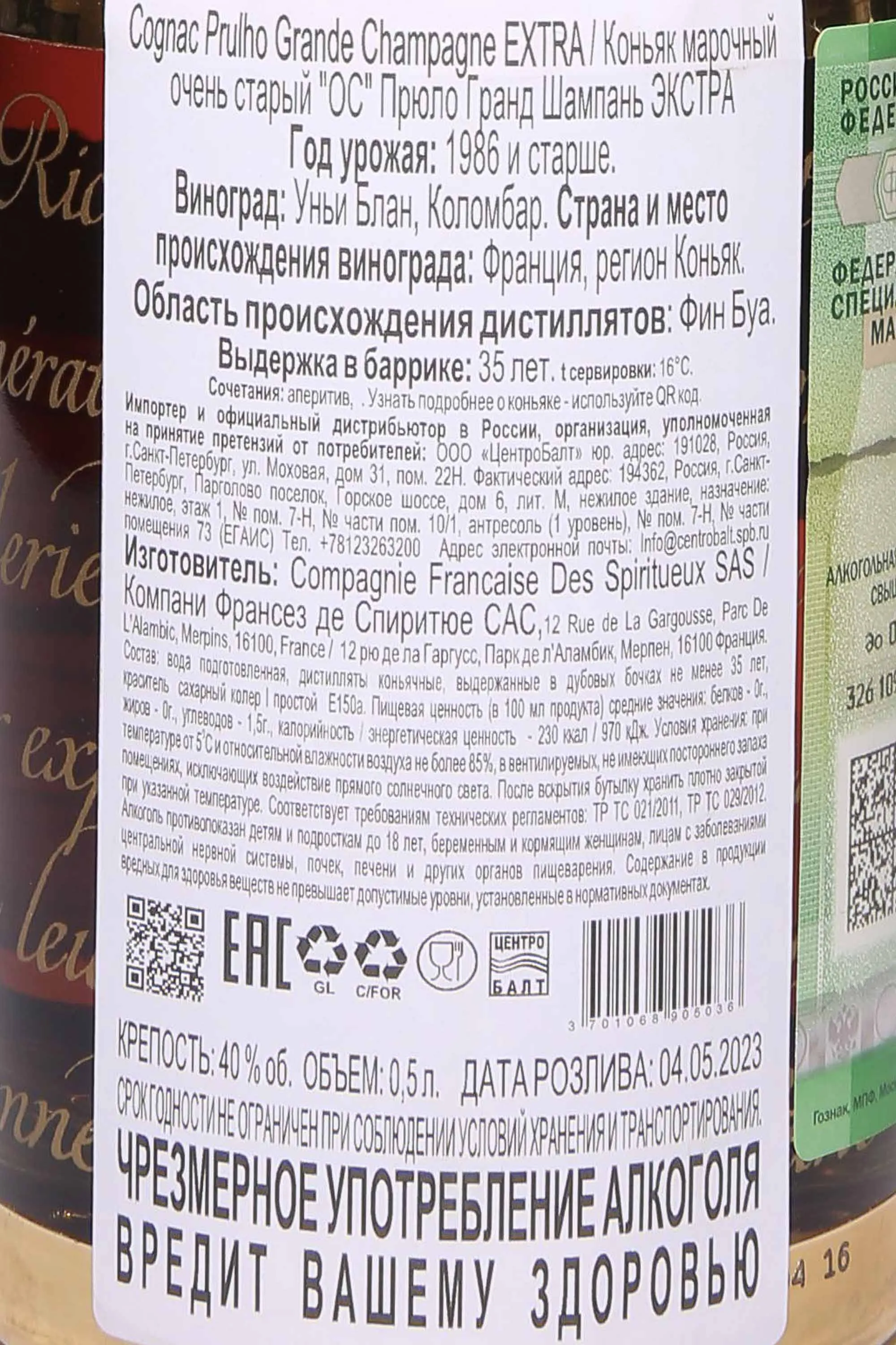 Коньяк Prulho Extra Grand Champagne 0,5 л в подарочной упаковке создан в самом сердце региона Гран Шампань, где виноградники расположены на известняковых почвах, обеспечивающих редкую чистоту и минерализацию ягод. Урожай собирали в сезон с мягкой зимой и продолжительным солнечным летом, что позволило лозам накопить достаточное количество сахаров при сохранении сбалансированной свежести. Дистилляция проводилась в традиционных медных аламбиках методом двойной перегонки, после чего спирты созревали на протяжении 35 лет в барриках из лимузенского дуба.