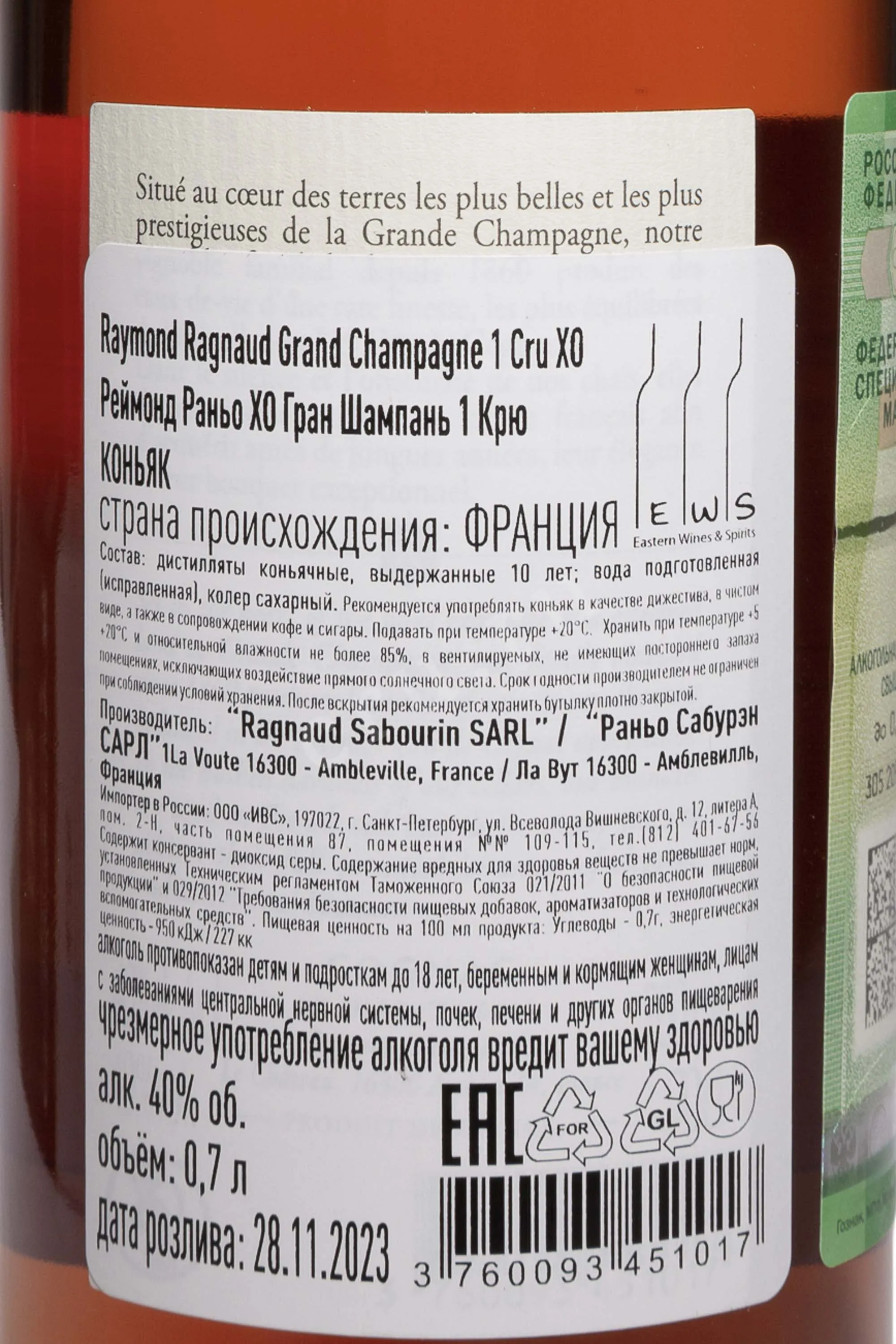 Коньяк Raymond Ragnaud XO Grand Champagne 1er Cru De Cognac in gift box 0.7 л создан на винокурне с вековыми традициями, расположенной в сердце региона Гран Шампань — самого престижного крю Коньяка. Основой напитка служат ягоды, произрастающие на известняковых почвах, придающих спиртам неповторимую минеральную чистоту и глубину. Производство осуществляется по классической технологии двойной перегонки в медных аламбиках с последующей выдержкой в бочках из лимузенского дуба более десяти лет. За годы созревания дистиллят приобретает благородную мягкость и сложный ароматический букет, отражающий характер терруара. Мастера дома Raymond Ragnaud тщательно отбирают спирты исключительно категории Premier Cru, добиваясь редкого баланса силы и изящества, достойного статуса XO.