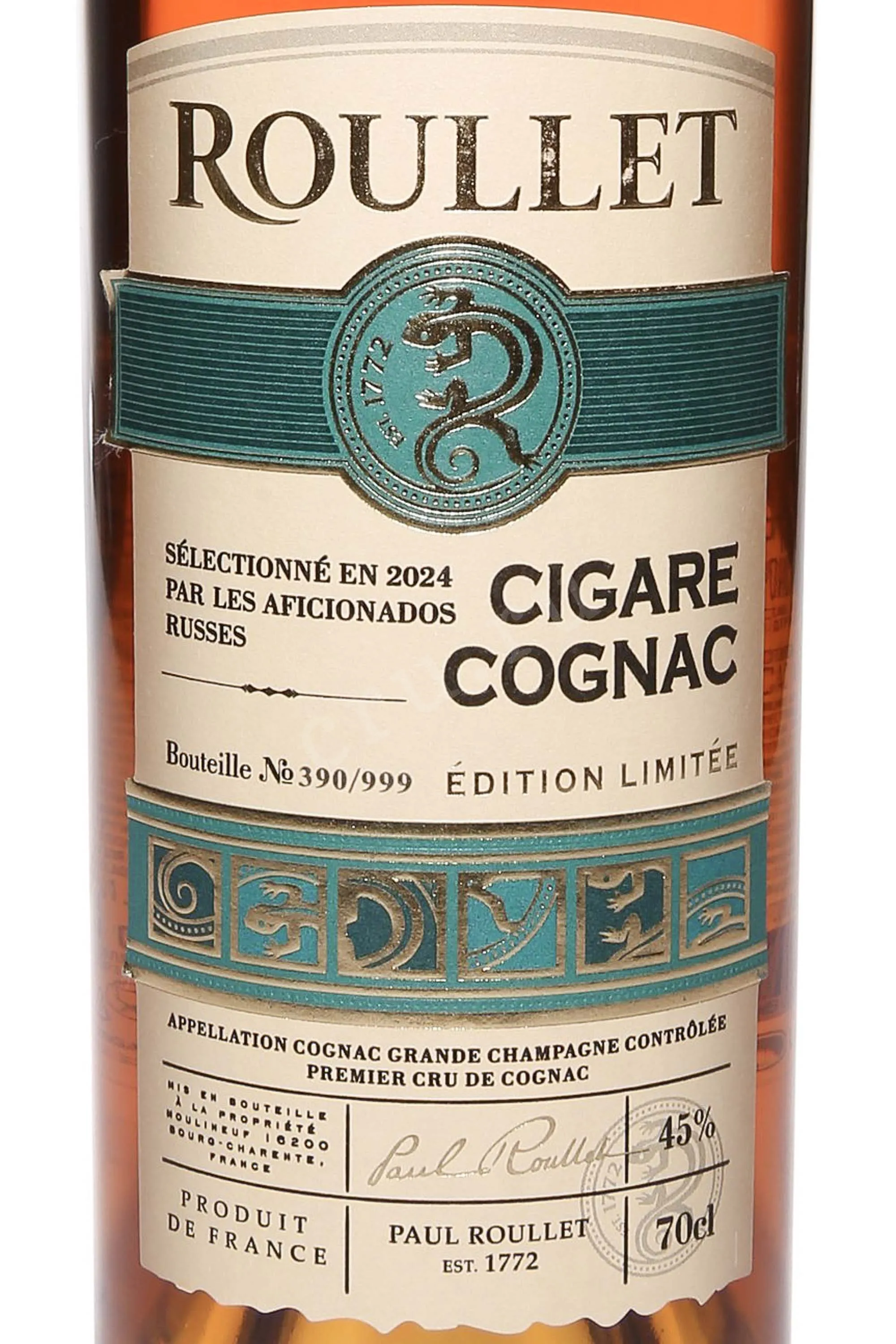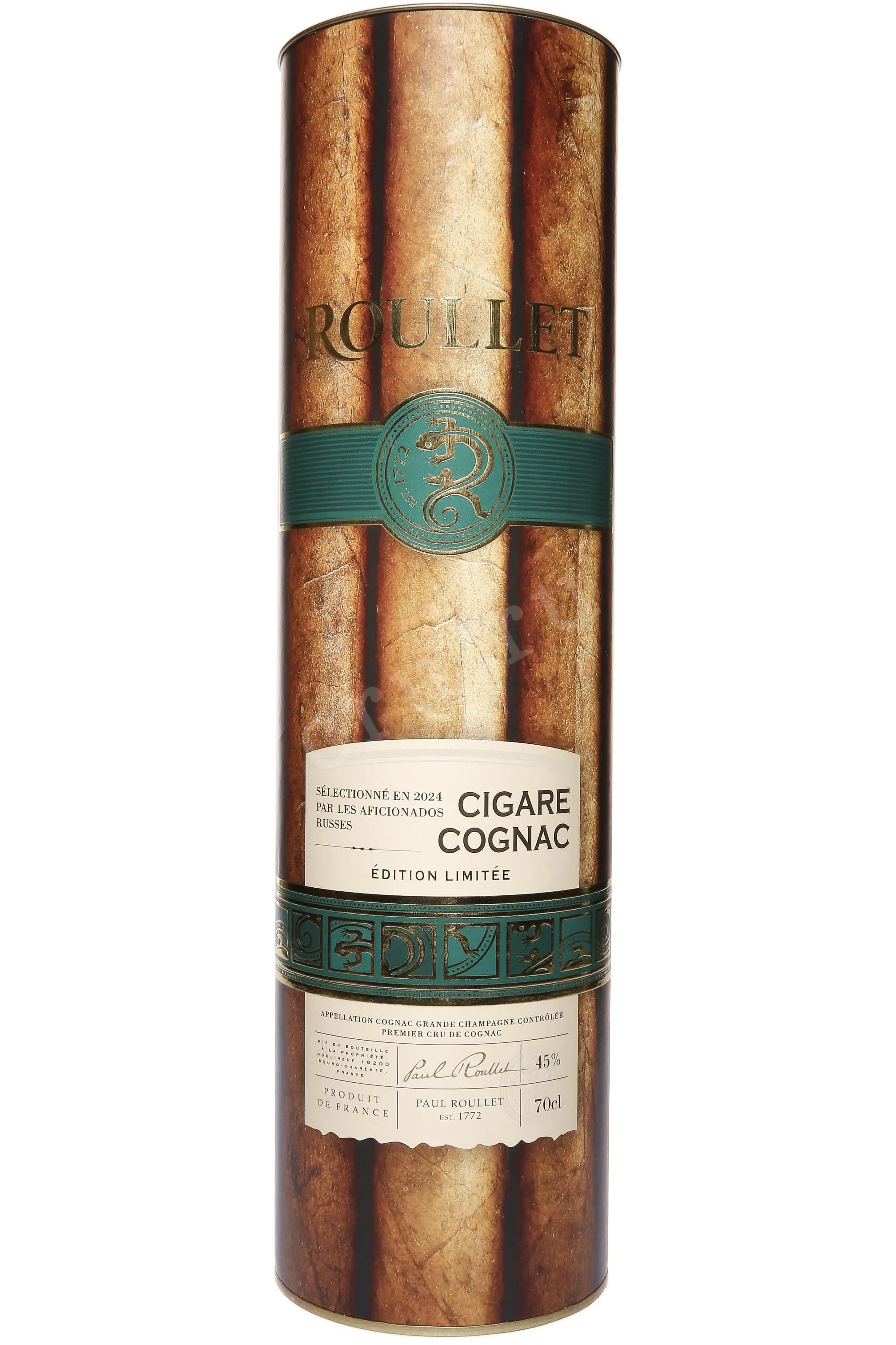 Коньяк Roullet Cigare Grand Champagne 1995 года 0,7 л в тубе — коллекционный, оригинальный, созданный специально для дегустации вместе с хорошими сигарами. Это третий «сигарный» релиз, выпущенный на волне большого успеха двух предыдущих. Для него были отобраны редкие дистилляты из урожая 1995 года с престижных виноградников Гран Шампани. Три бочки из подвалов дома Рулле выбирали путем слепой дегустации эксперты и ценители сигарной культуры. Коньяк выдерживался во французском дубе не менее 29 лет (вплоть до самого розлива в 2024 году). Бутилирование осуществлялось без фильтрации и подкрашивания. Коллекционный алкоголь из редкой серии был выпущен тиражом всего 900 бутылок, каждая из которых имеет свой номер, что подтверждает подлинность. Он станет отличным подарком по особенному поводу.