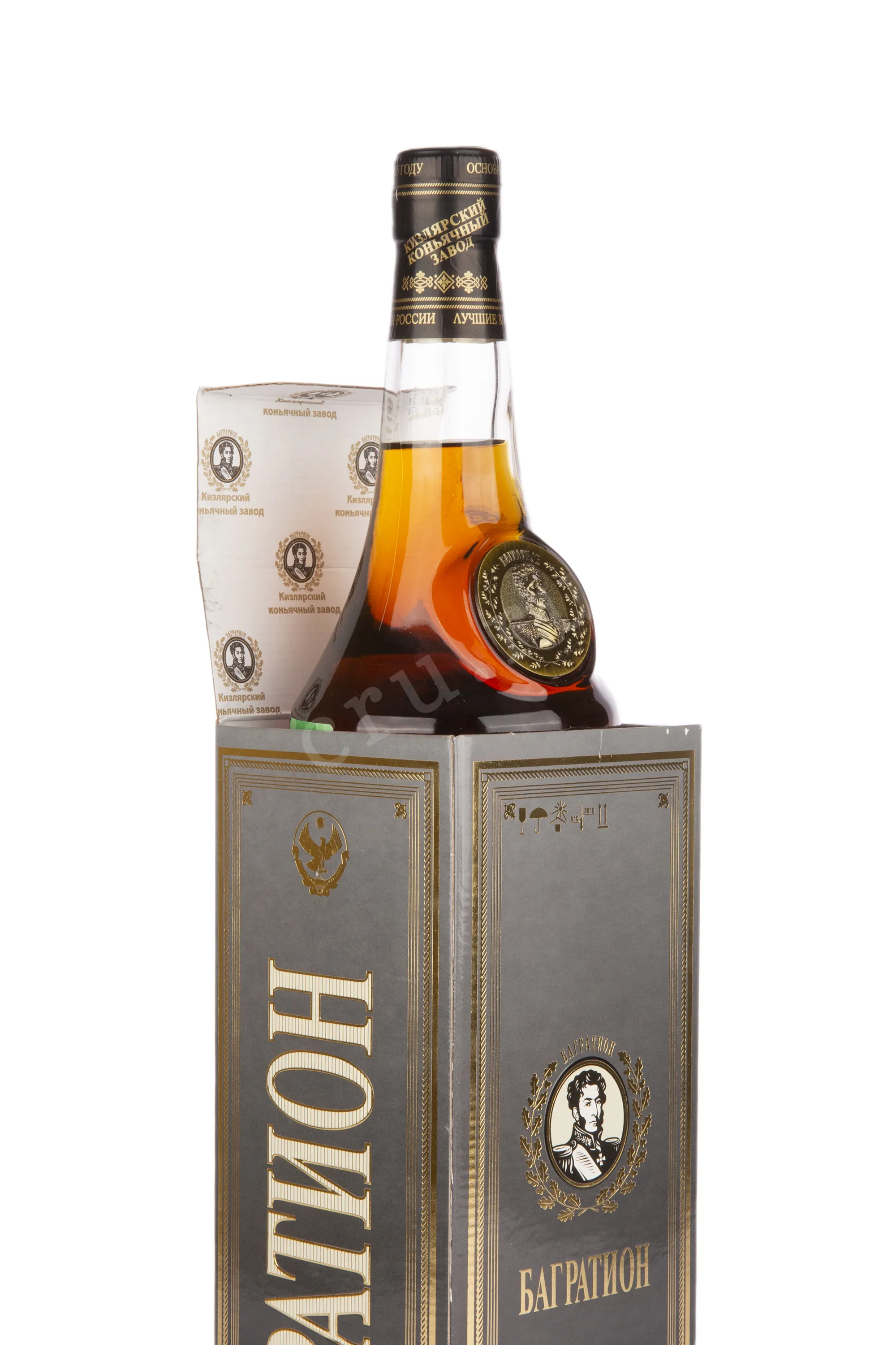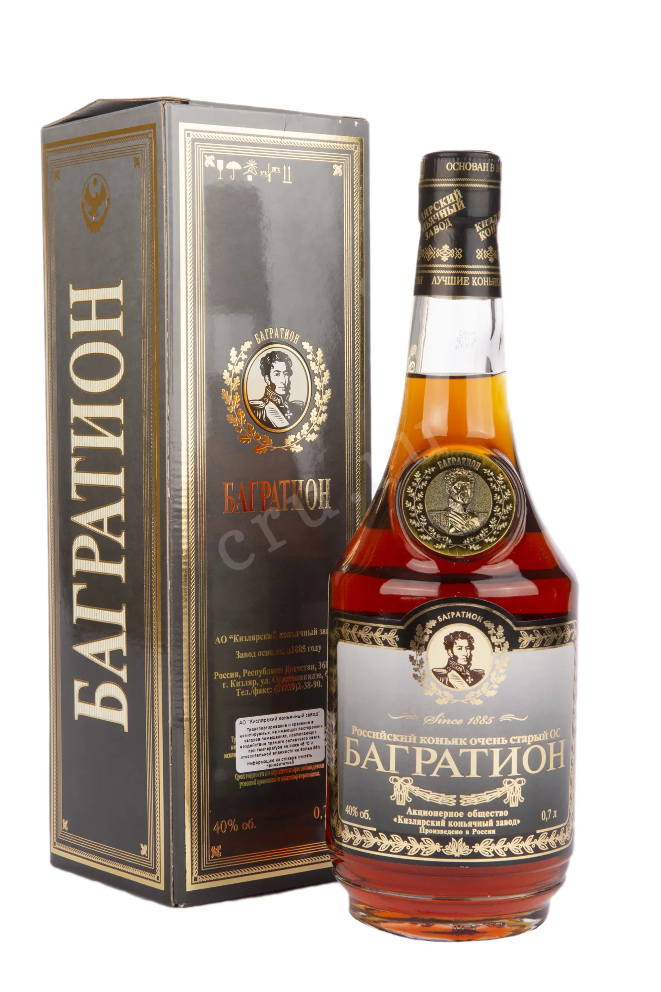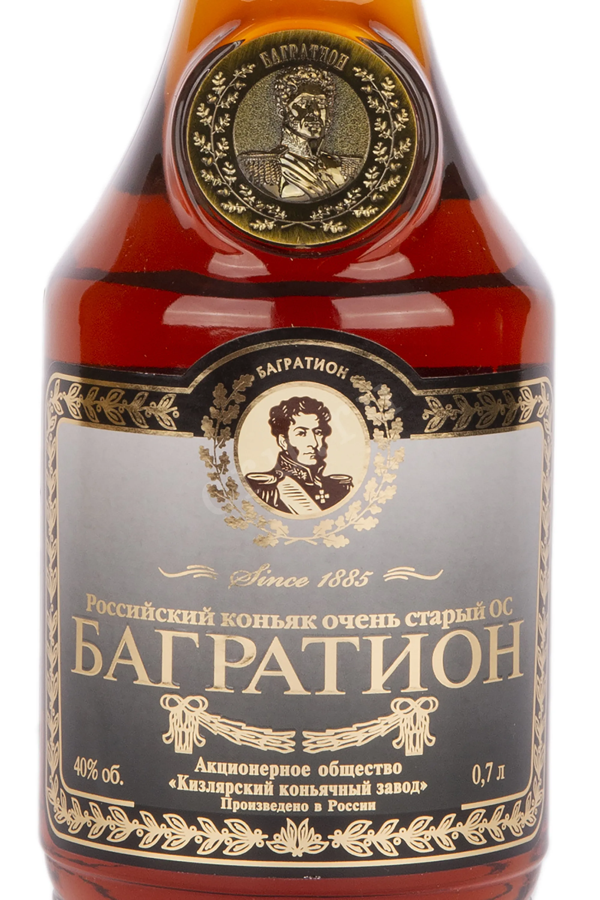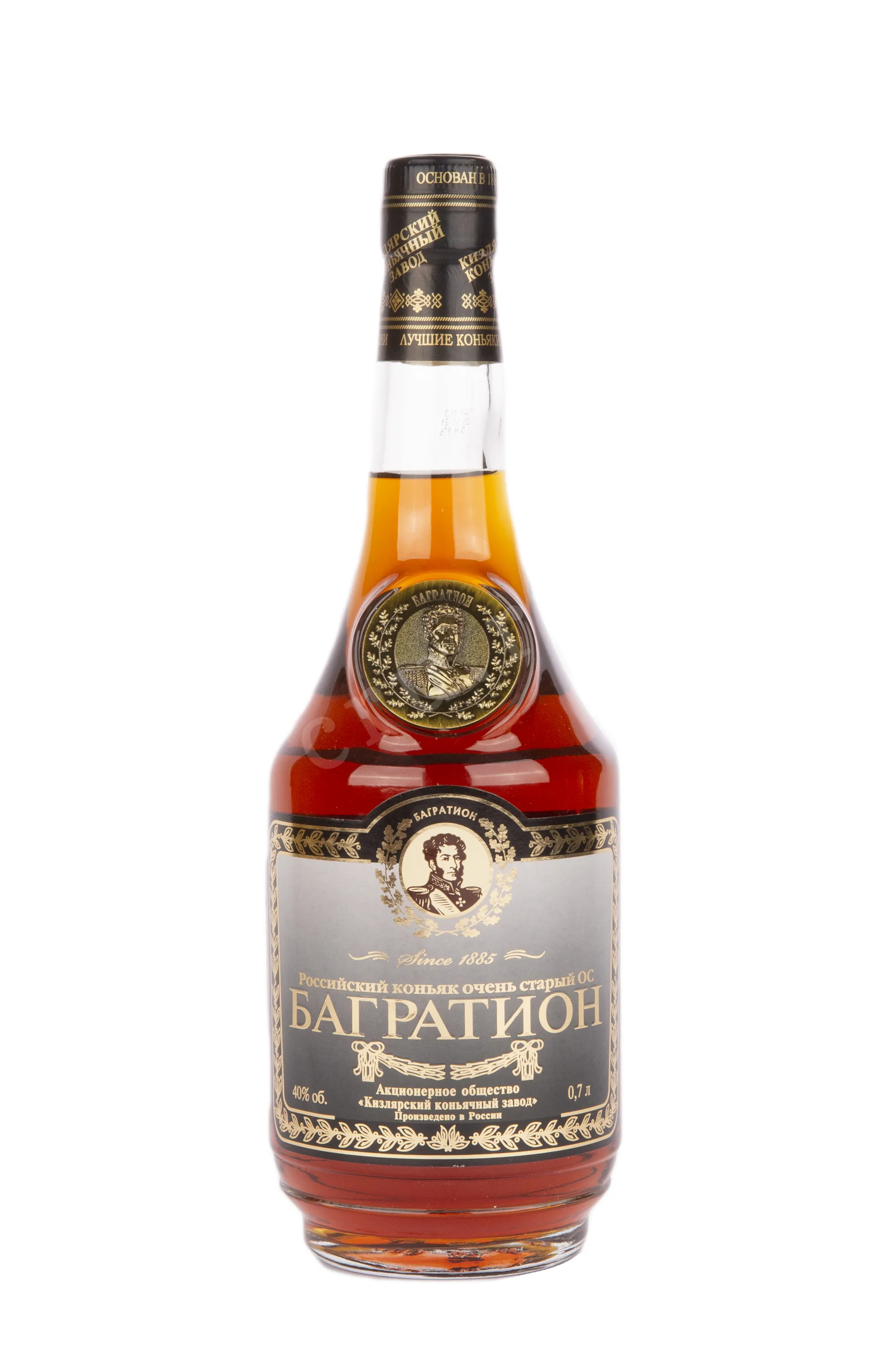 Коньяк Багратион ОС 40% 0,7 л. - гордость ассортимента ККЗ. Создан из отборных дистиллятов, выдержанных не менее двух десятилетий в бочках из горного кавказского столетнего дуба.
