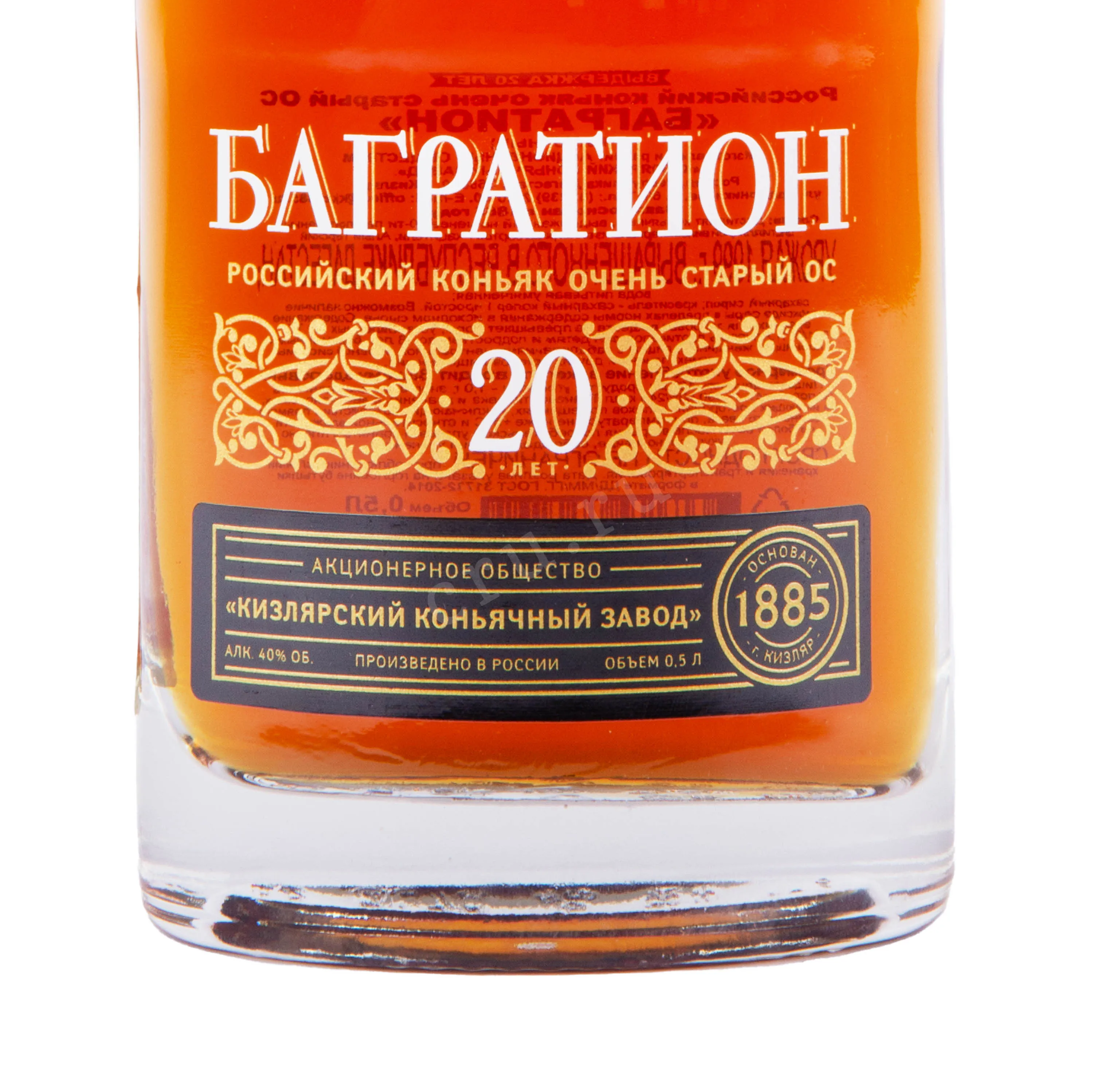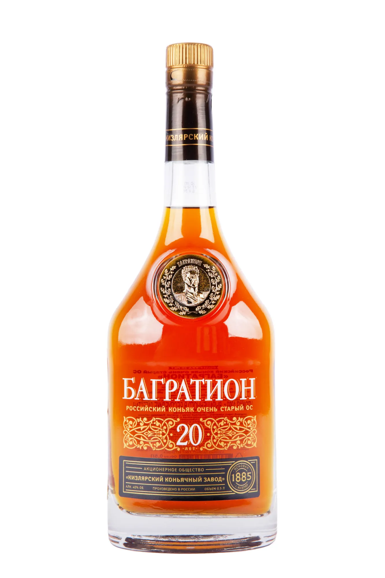Коньяк ККЗ Багратион ОС 20-летний 0,5 л — алкоголь премиального уровня, произведенный в Республике Дагестан. В роли сырья выступают сорта Ркацители и Алый Терский (редкий дагестанский автохтон) урожая 1999 года, собранные вручную на пике спелости. Дистилляты из них, полученные традиционным способом, много лет провели в бочках из столетнего карабахского дуба. Минимальный возраст спиртов в купаже составляет 20 лет. Российский коньяк собрал множество наград и золотых медалей на международных конкурсах, удостоился Международного сертификата в Англии и был признан лучшим во Франции, обойдя даже знаменитые бренды.