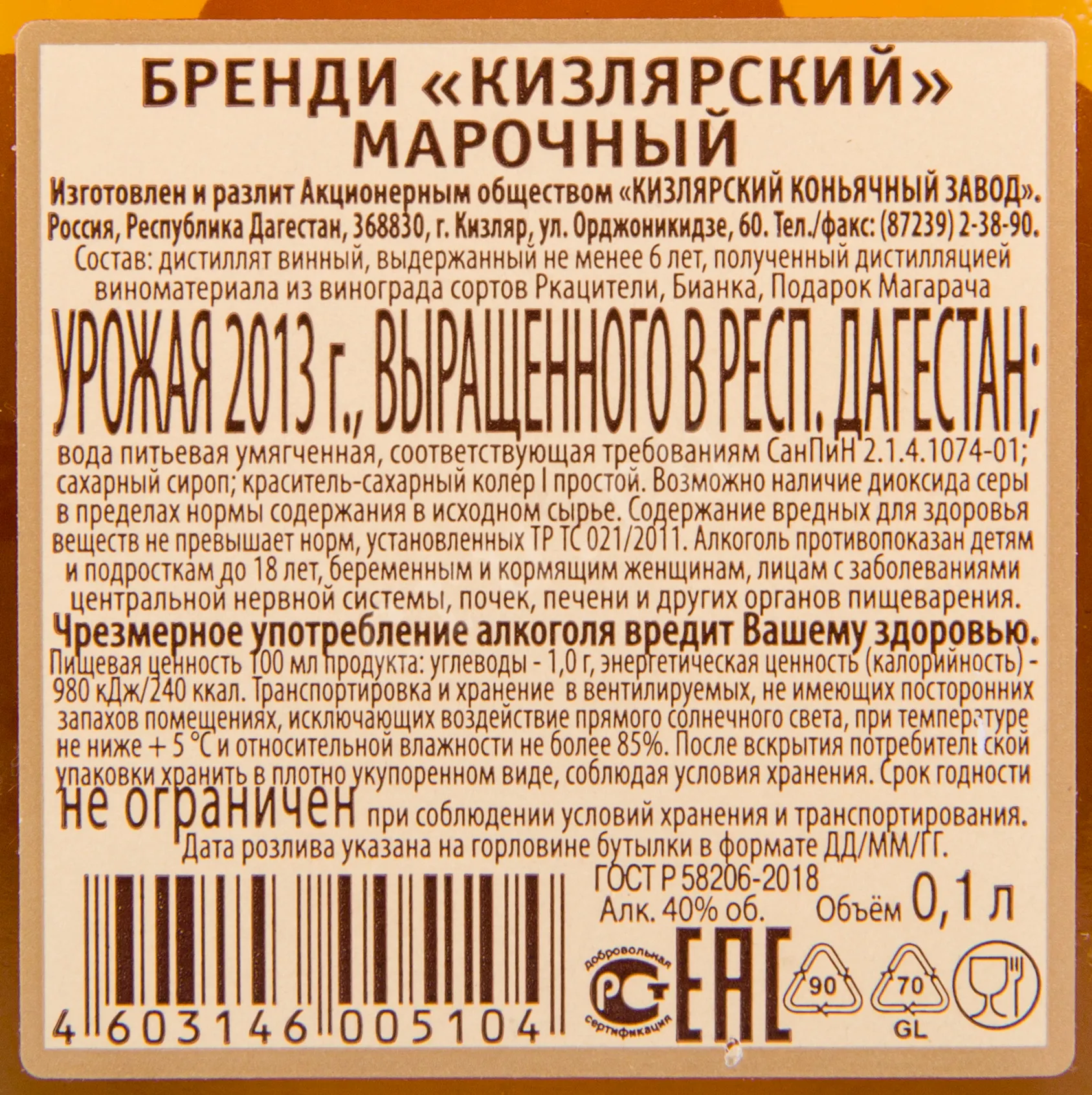 Kizlyarskiy Marochny 0.1 л купить - бренди Кизлярский Марочный цена в магазине