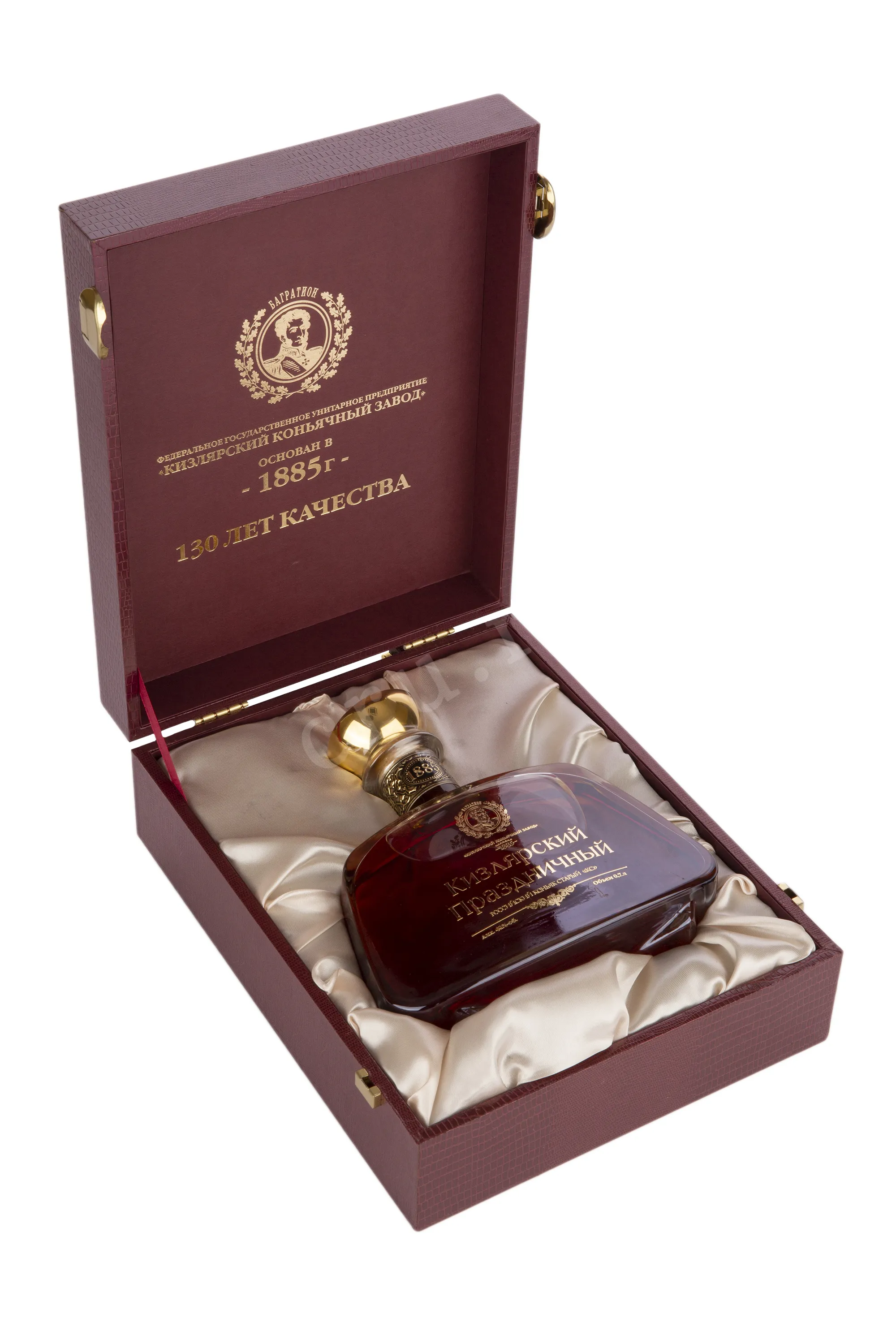 Коньяк Кизлярский Праздничный КС 40% 0,7 л. в кейсе. Был выпущен к 110-летию завода, по специальному поручению для ограниченного использования. Роскошный, изысканный напиток. Идёт в наборе с премиальным кейсом, станет великолепным подарком на любой повод.