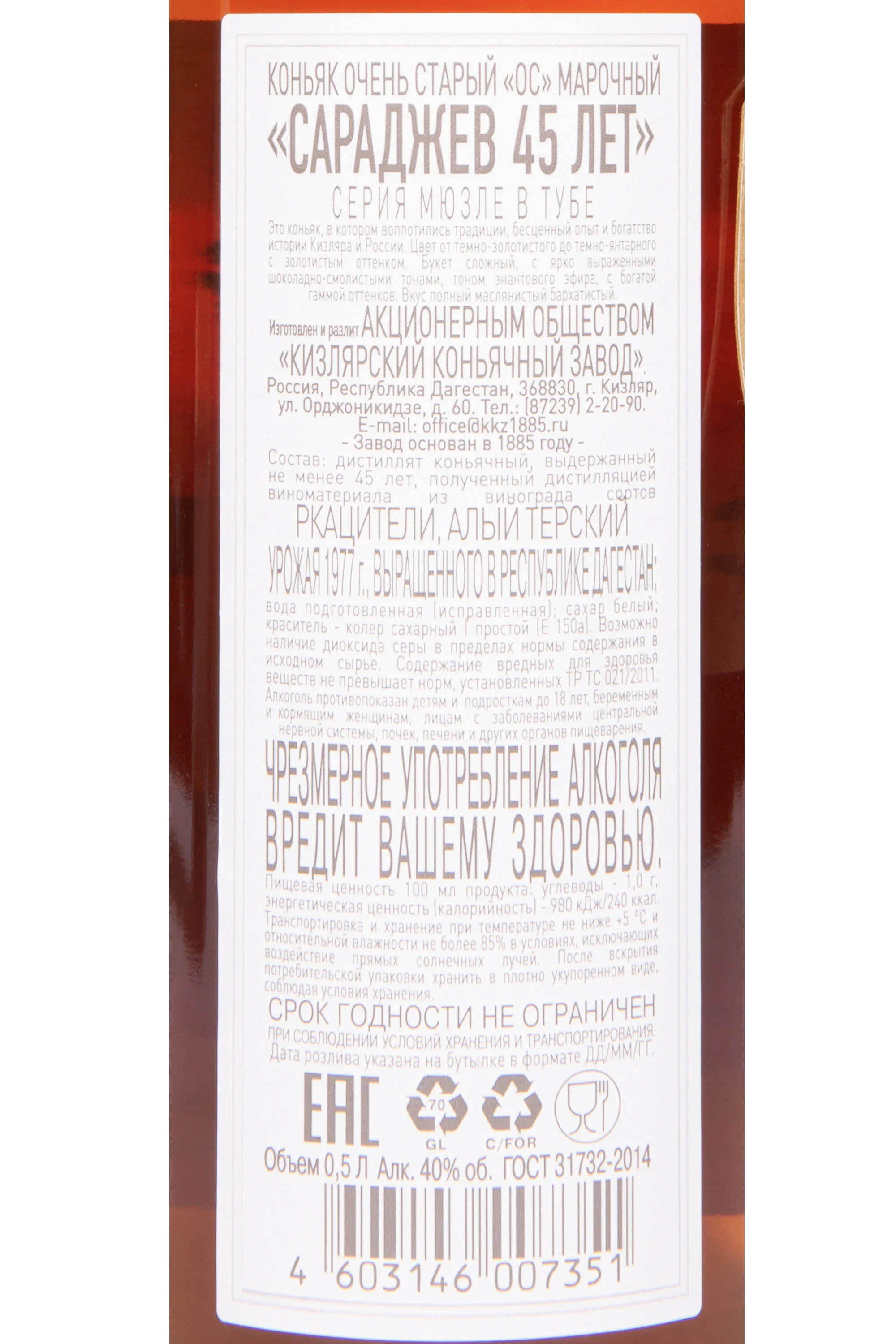Сараджев 45 лет ОС в тубе 0.5 л купить Российский коньяк Saradjev 45 Years in tube цена в магазине КРЮ ПРОФИг. Москва, ул. Профсоюзная, д. 16/1010:00-22:00 Ежедневно+7 (495) 920-20-02info@cru.ru