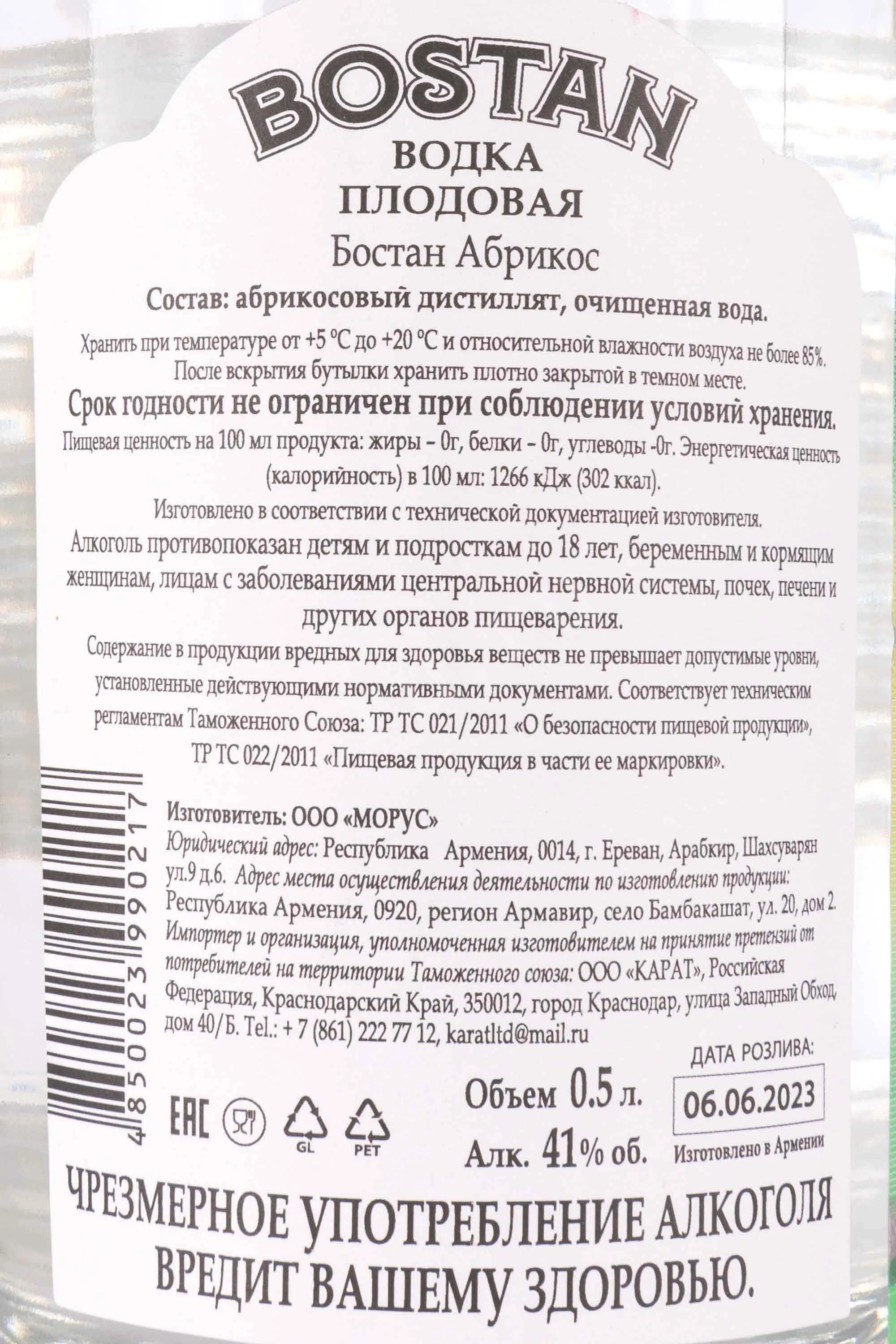 Bostan Apricot 0.5 л купить - дистиллят Бостан Абрикос цена в магазине