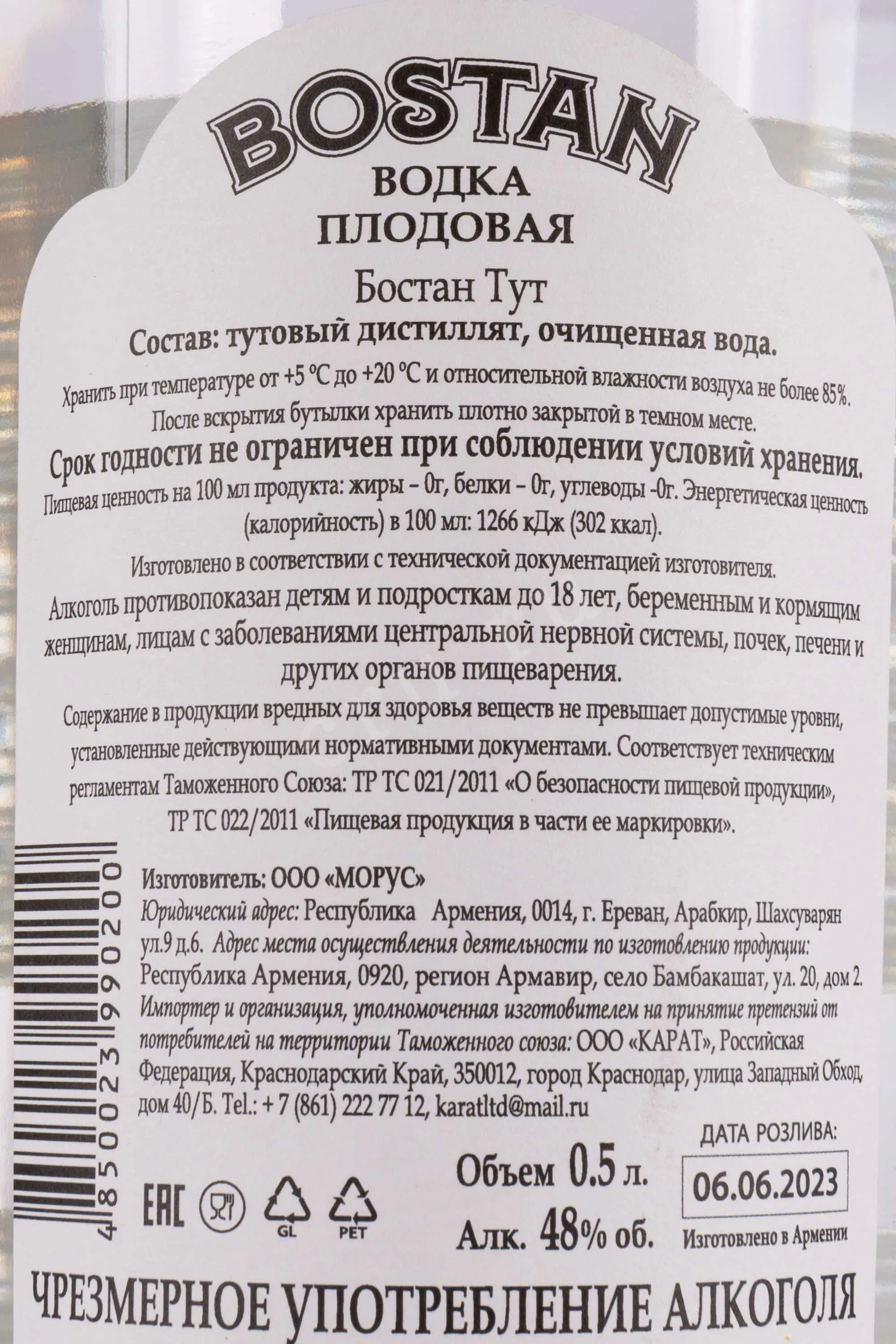 Bostan Mulberry 0.5 л купить - дистиллят Бостан Тут цена в магазине