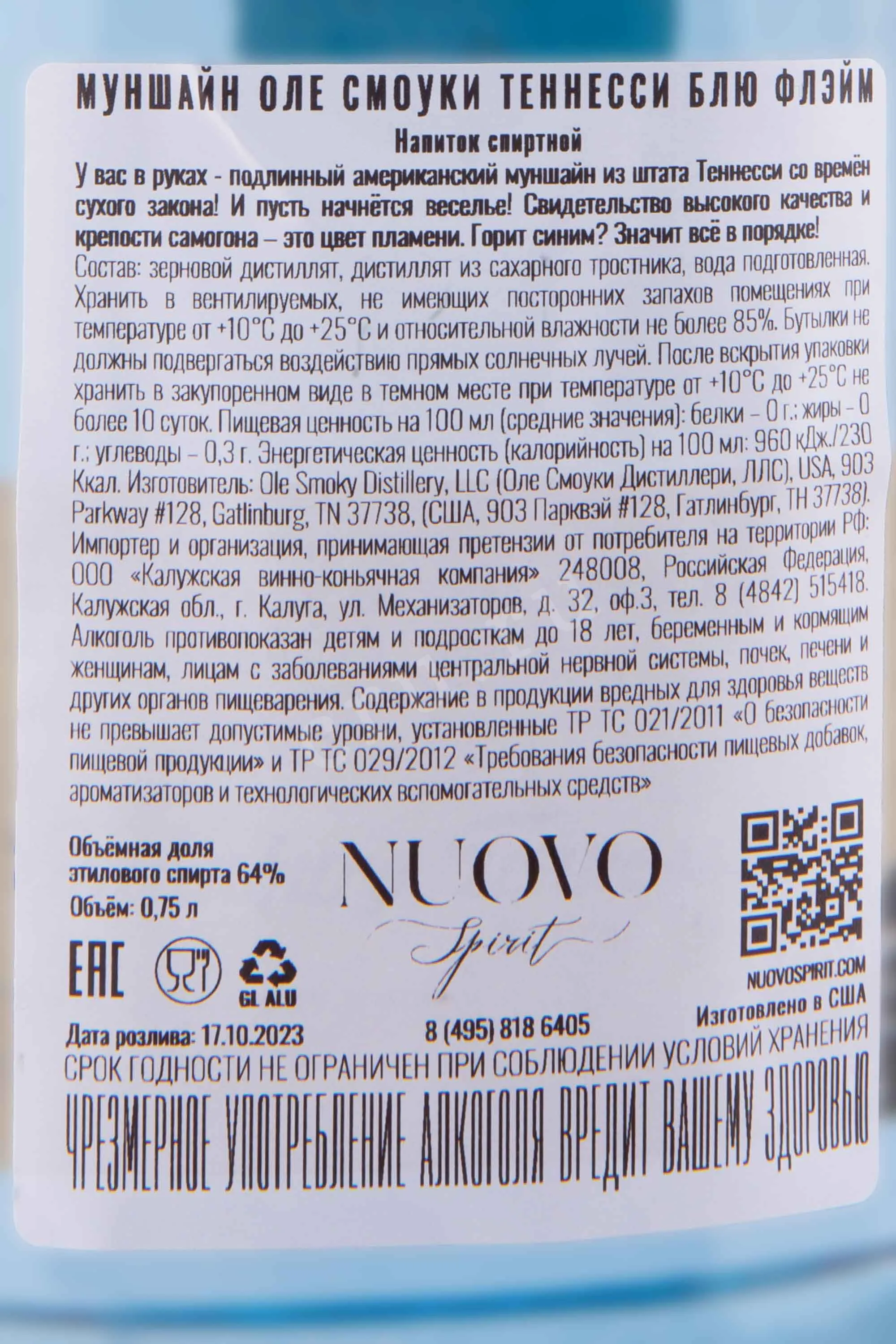 Ole Smoky Moonshine Tennessee Blue Flame 0.75 л купить - дистиллят Оле Смоуки Муншайн Теннесси Блю Флэйм цена в магазине