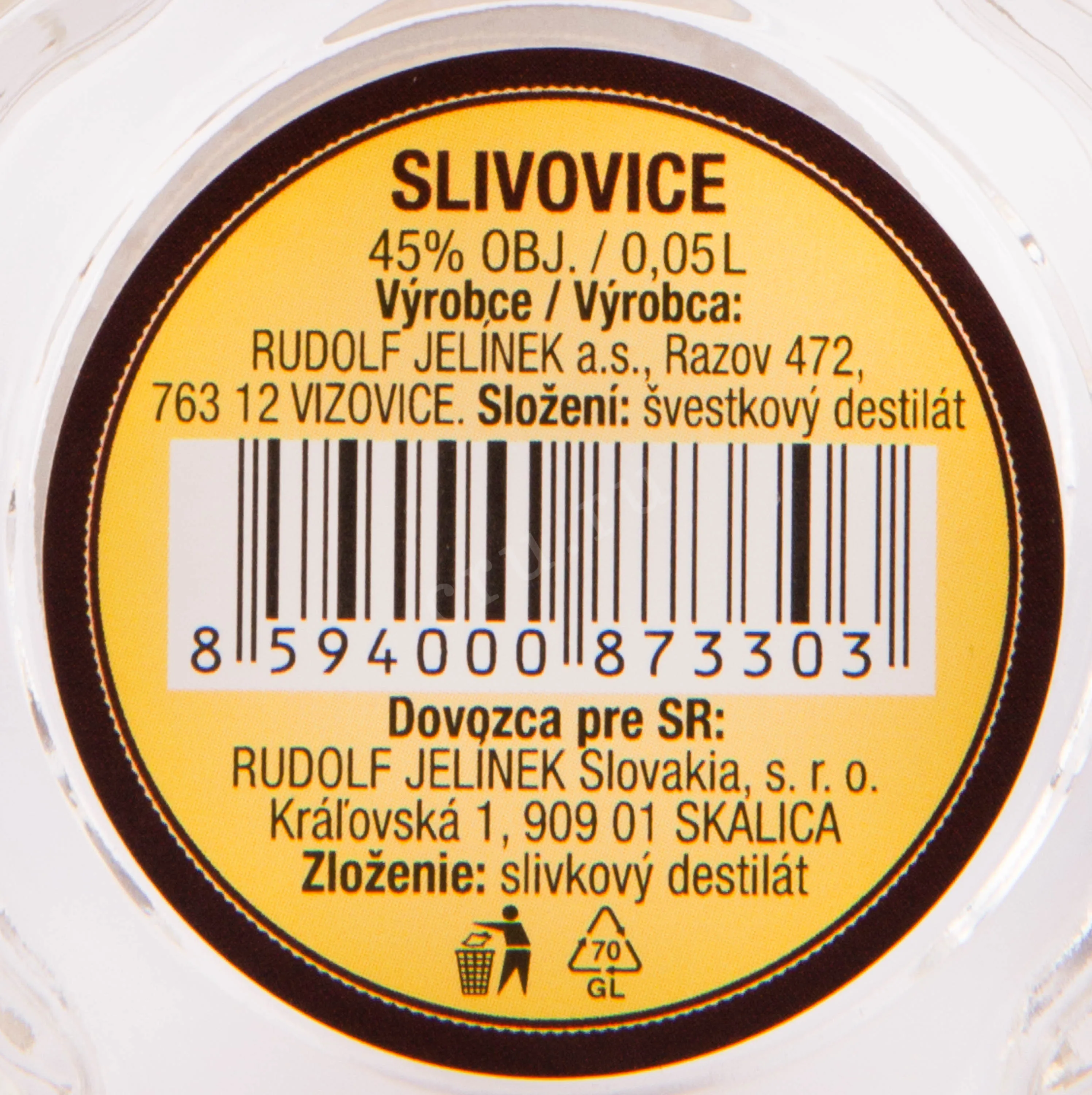 R. Jelinek Slivovice 3 years 0.05 л купить - дистиллят Рудольф Елинек Сливовица 3 года цена в магазине