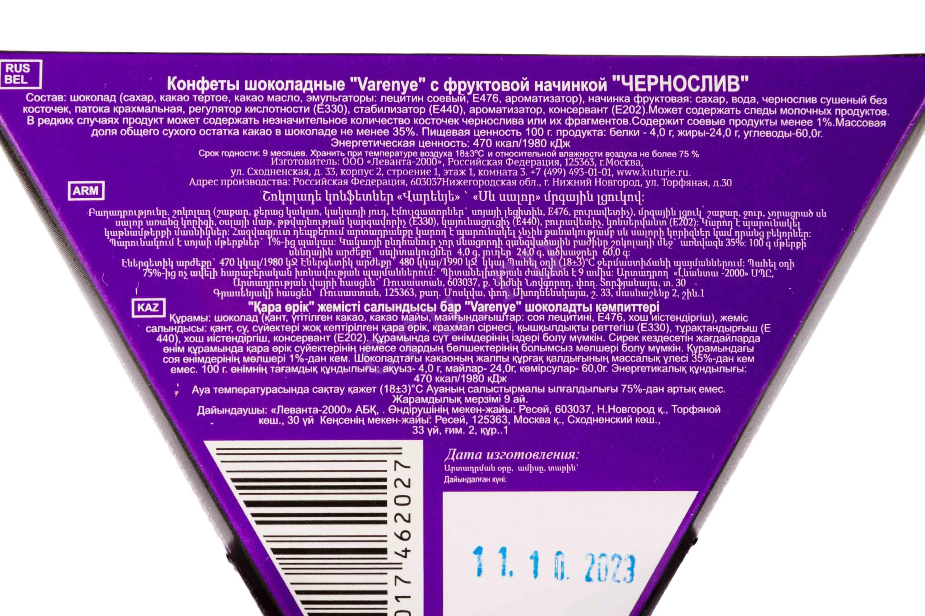 Конфеты Varenye with Prune filling 115 г купить с доставкой - цена в магазине КРЮ ПРОФИ