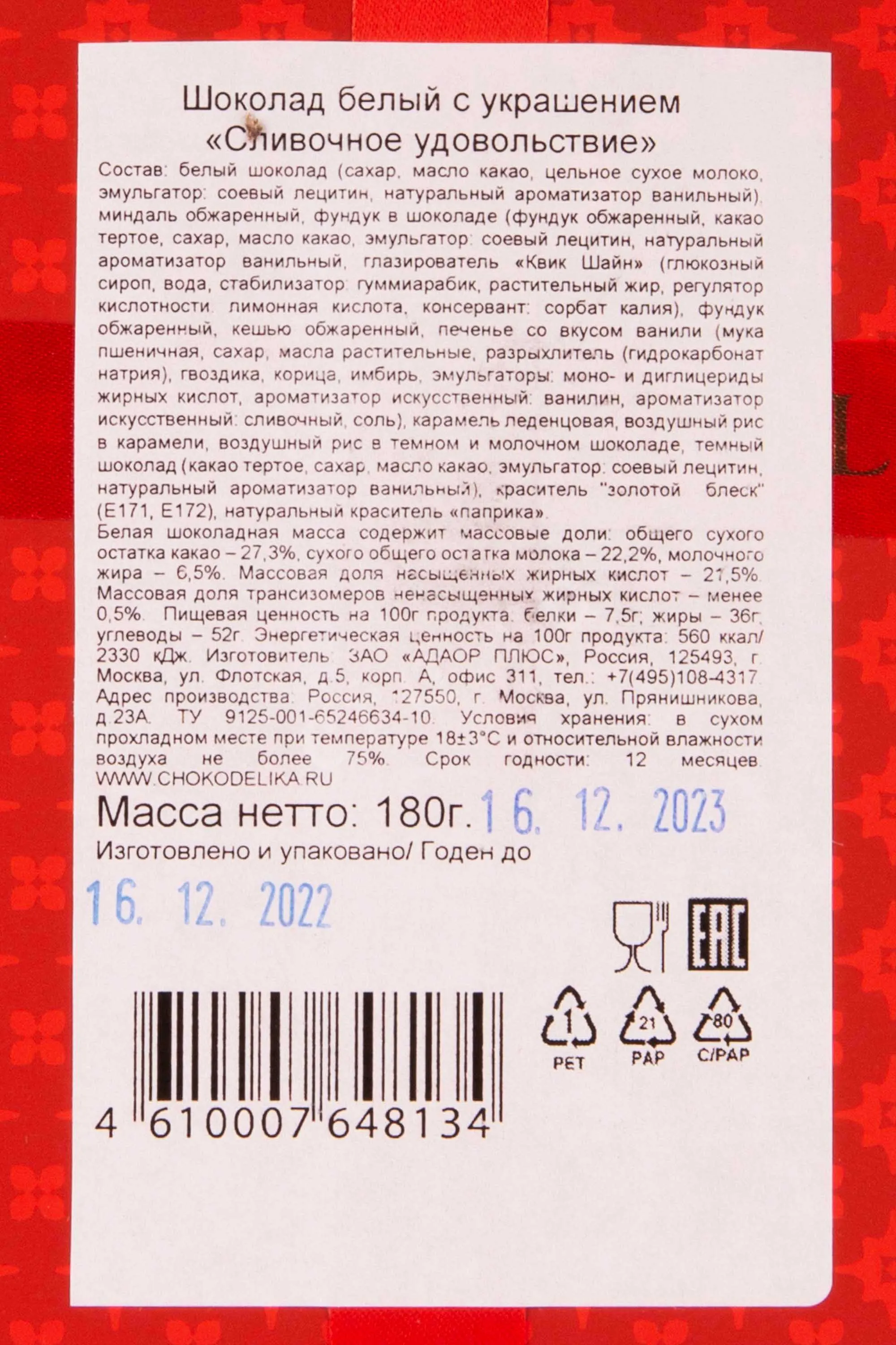 Шоколад Чокоделика "Сливочное удовольствие" белый с украшением 180 г купить с доставкой - цена в магазине КРЮ ПРОФИ