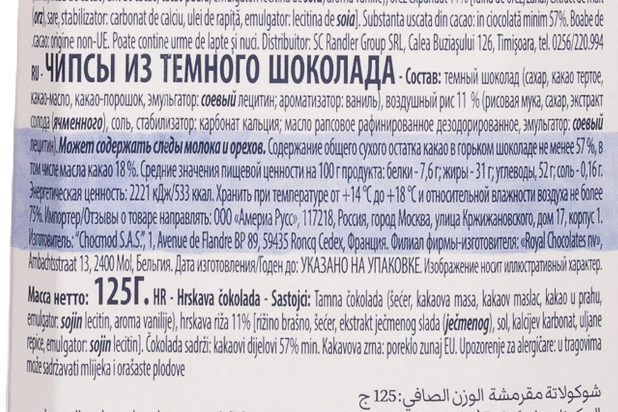 - Насыщенный вкус темного шоколада сочетается с приятной горчинкой и мягкой сладостью. Воздушные злаки добавляют легкость и создают интересный контраст между плотностью шоколада и хрустом.