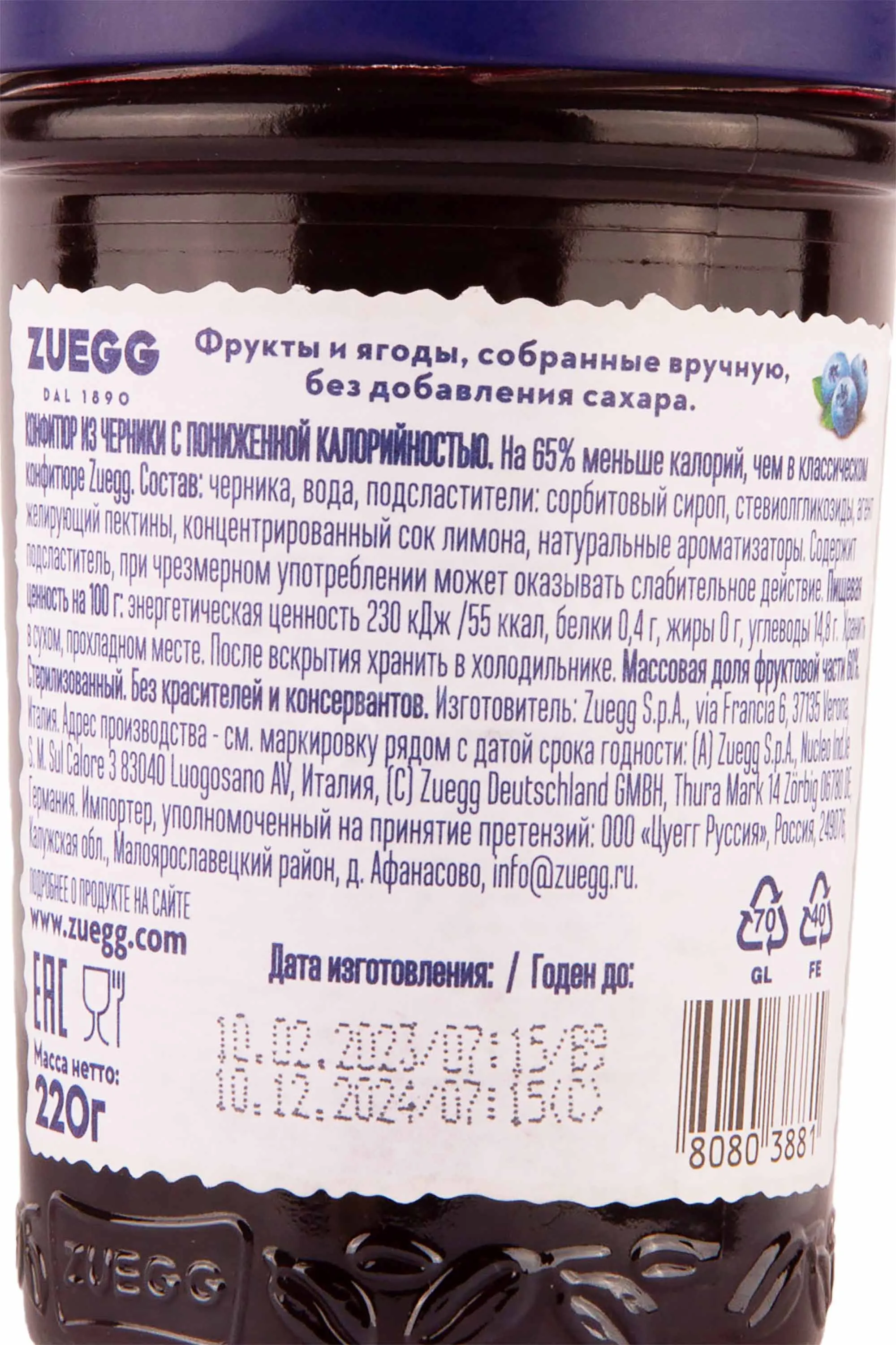 Джем Zuegg mirtilli neri without sugar 220 g купить с доставкой — джем Цуэгг Черника без сахара 220 г цена в магазине КРЮ ПРОФИ