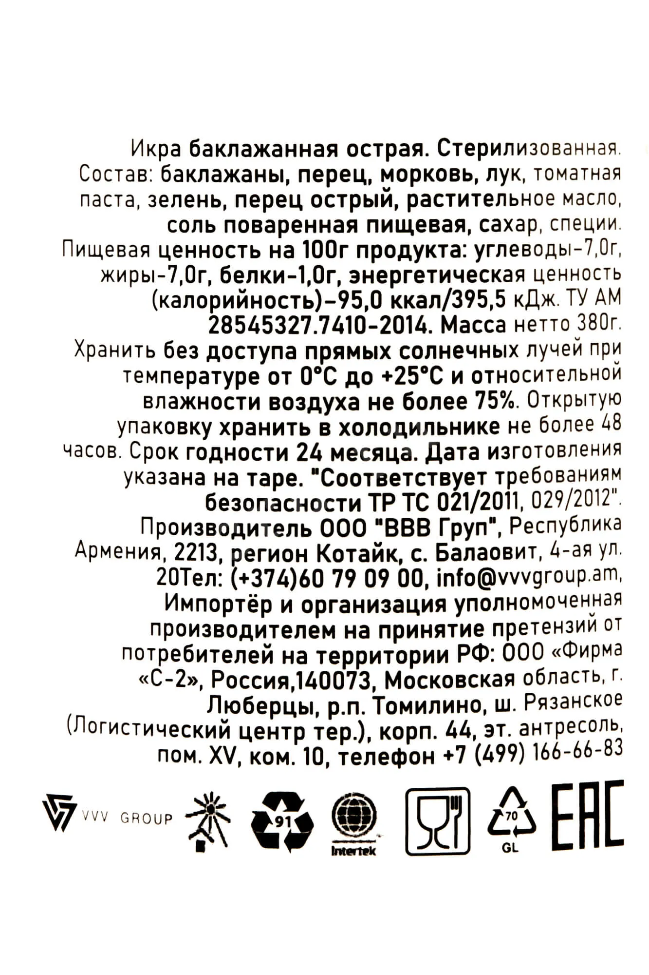 Икра баклажанная Сады Арагаца особо острая 380 г купить с доставкой - цена в магазине КРЮ ПРОФИ