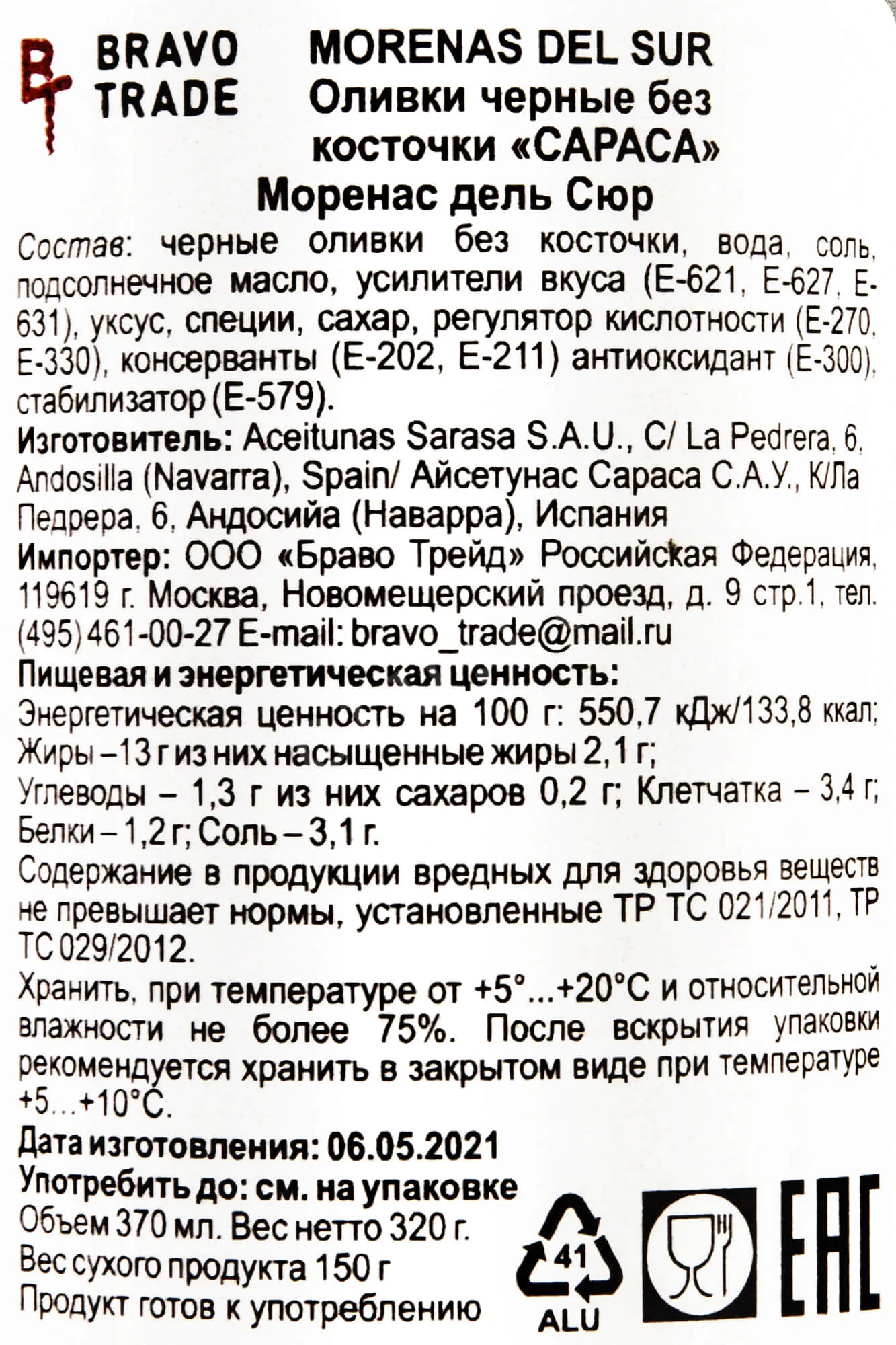 Olives Sarasa Morenas del Sur купить с доставкой - цена в магазине КРЮ ПРОФИ