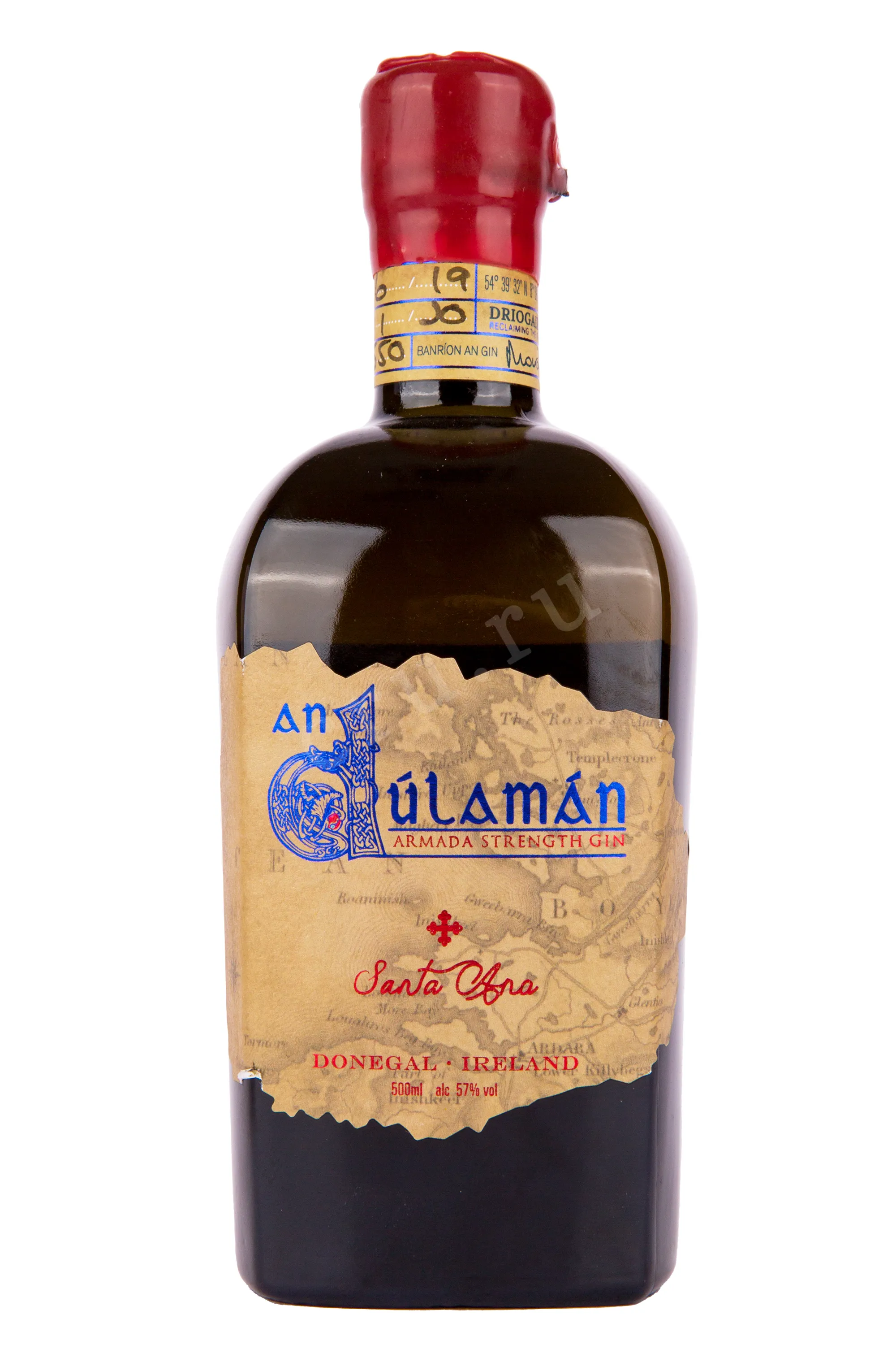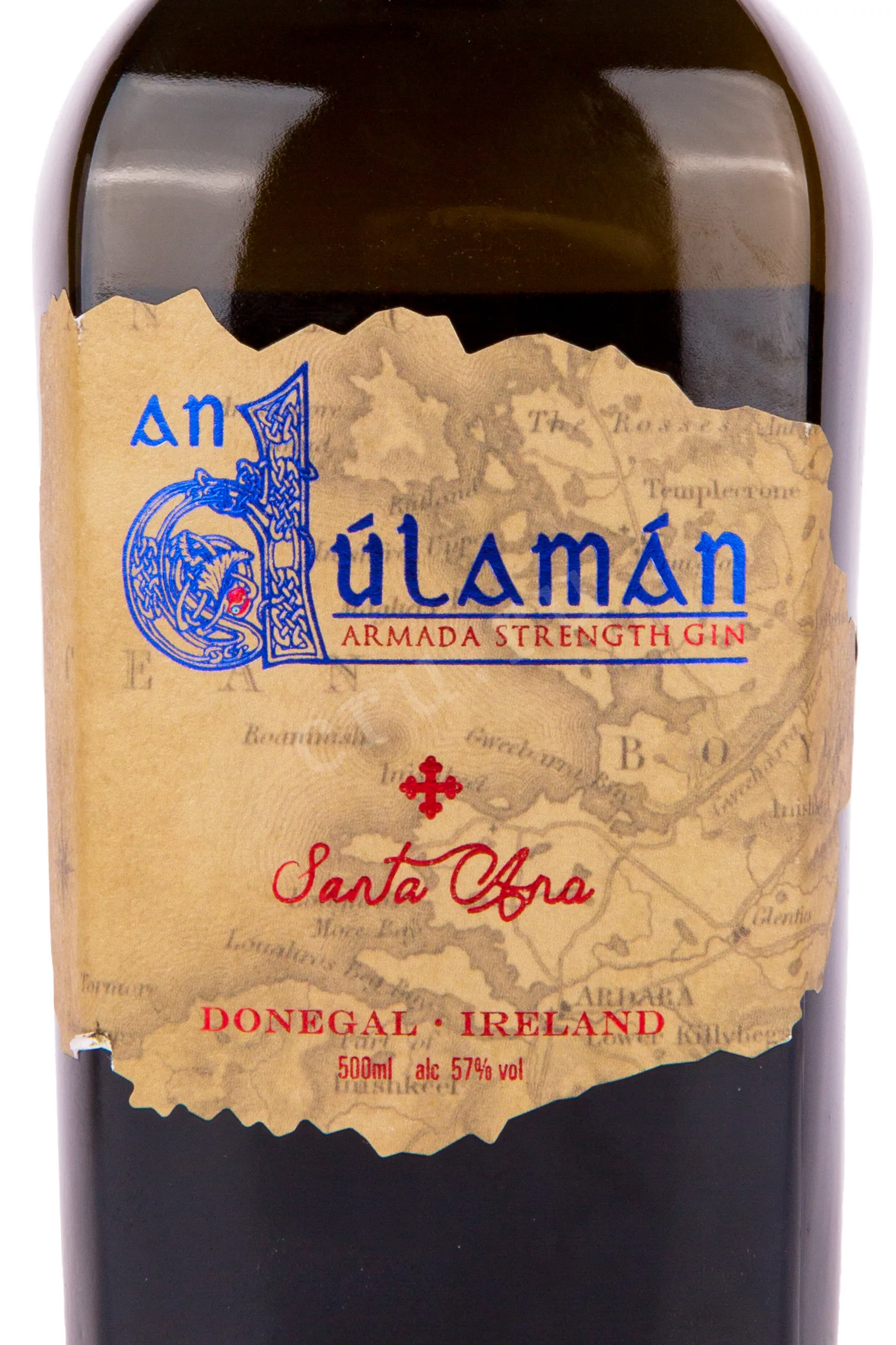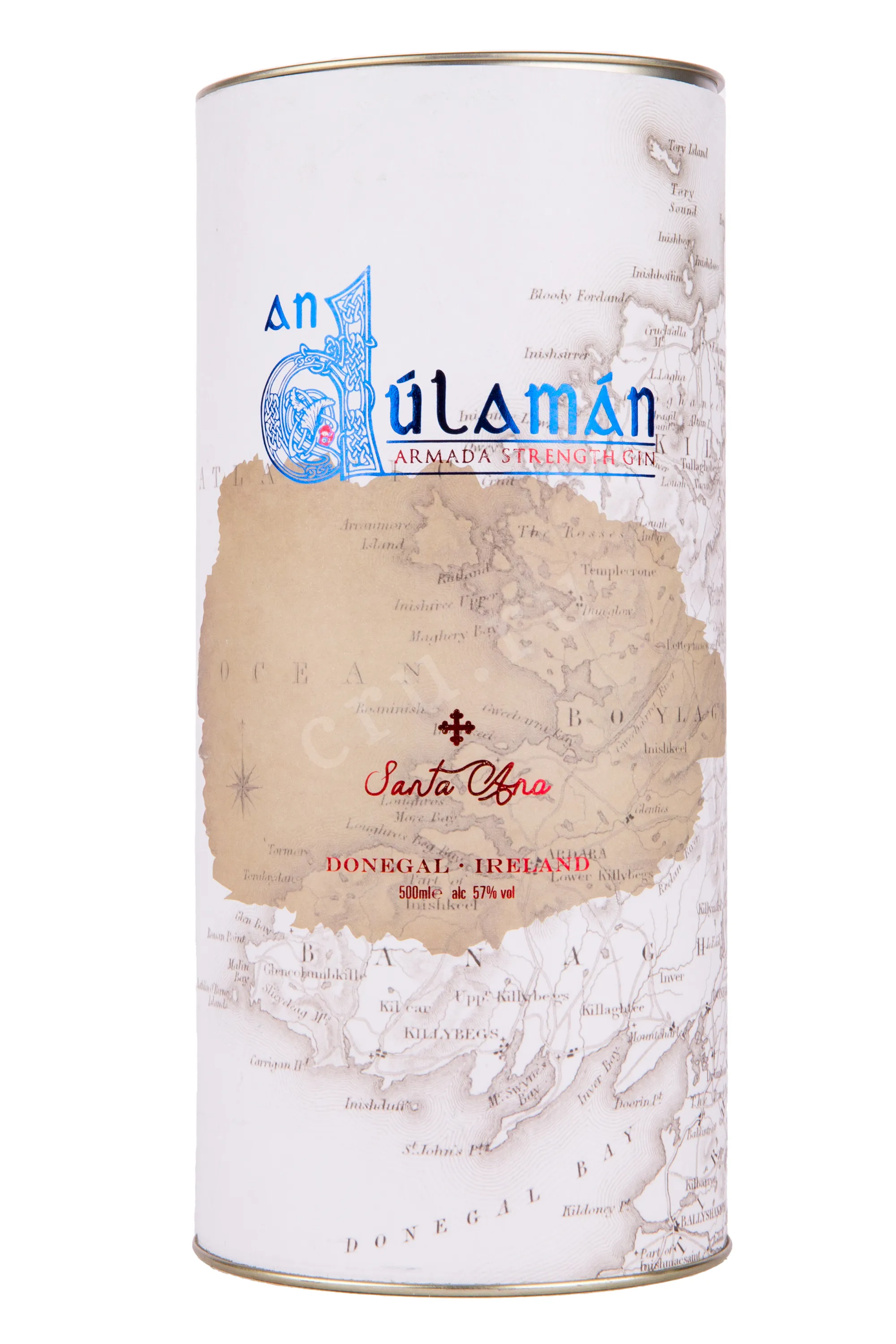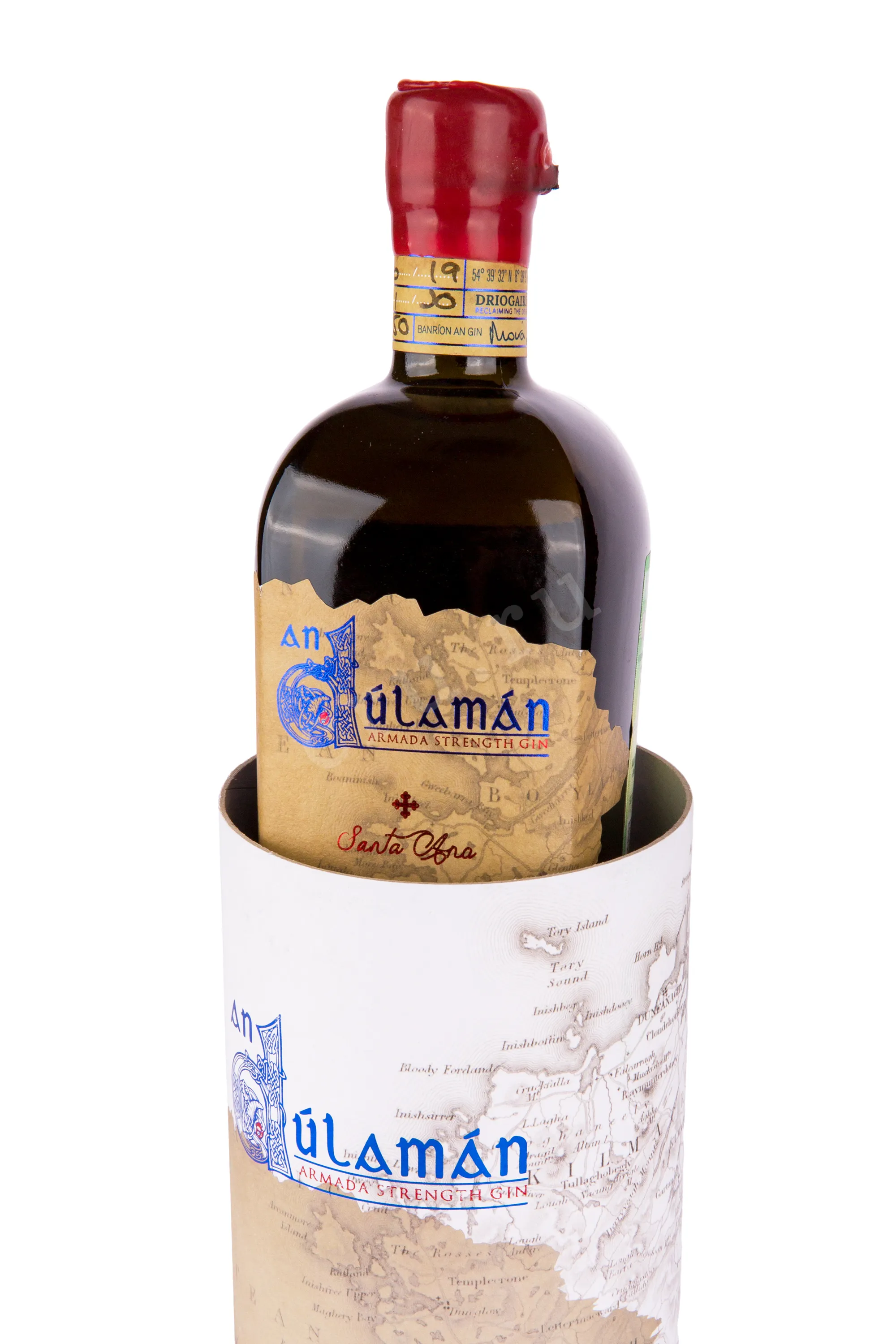 Джин An Dulaman Santa Ana Armada with gift box 0.5 л – уникальный крафтовый спиртной напиток, изготовленный в Ирландии, на побережье графства Донегал, из 11 растительных компонентов, пять из которых представляют собой морские водоросли разных сортов, собранные вручную недалеко от винокурни. Ингредиенты подвергаются однократной перегонке в медном кубе объемом 500 литров, после чего выдерживаются в дубовых бочках из-под испанского вина Риоха. В год производится всего 2500 бутылок. Морской алкоголь с традиционной армадской крепостью в 57% получил свое название в память о герцогине Санта Анне, которая погибла в 1588 году на борту андалузского корабля La Duquesta Santa Ana, разбитого в битве у берегов Лугрос-Мор. Джин предлагается к продаже в элегантной подарочной коробке-тубе, выполненной в морской тематике.