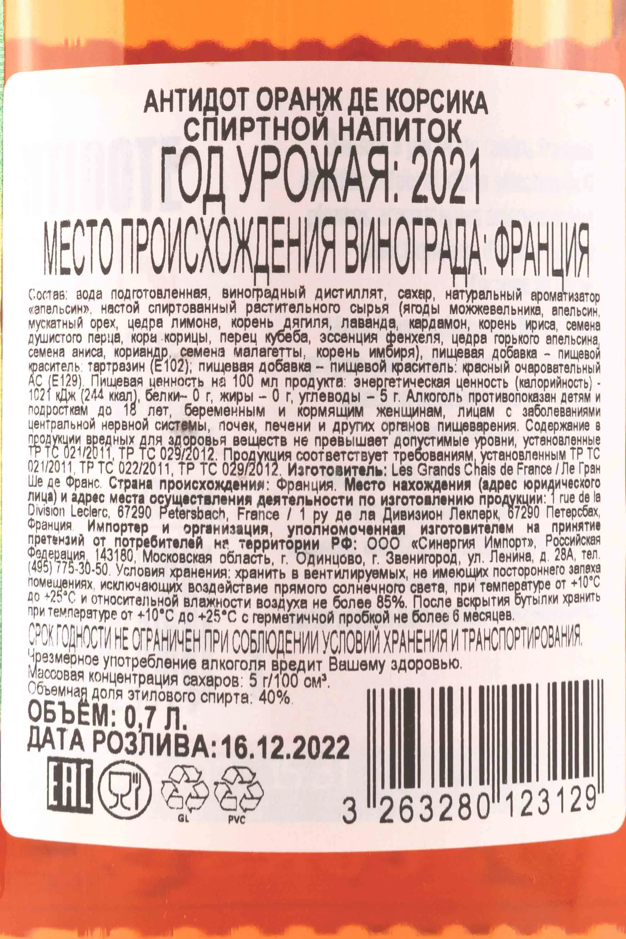 Джин Antidote Orange de Corse 0,7 л — французский образец на виноградном спирте с акцентом на цитрусовый профиль. В основе используется дистиллят из винограда, полученный путём многократной перегонки для достижения чистоты и мягкости. Для ароматизации применяются растительные компоненты, среди которых производитель отдельно выделяет апельсины с Корсики, ценимые за выраженную эфирную насыщенность и свежий вкус. Цитрусовая часть формируется за счёт натурального сырья, без применения ароматизаторов. Напиток создаётся как вариация классики с подчёркнутым средиземноморским характером.