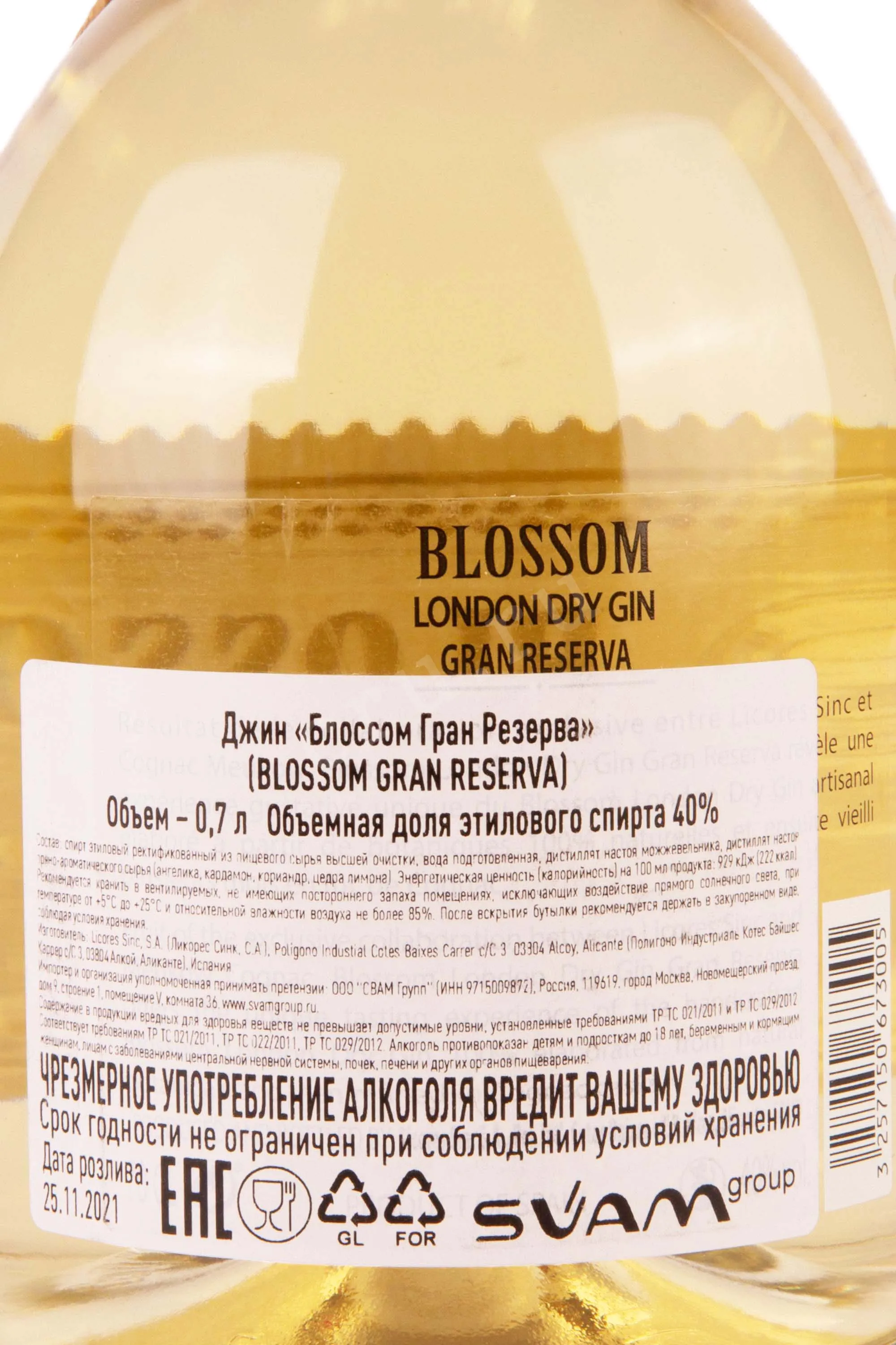 Джин Blossom Gran Reserva 0,7 л в подарочной упаковке с 2 бокалами — испанский напиток премиального сегмента, отличающийся выдержанным стилем и выраженным влиянием древесины. Он создан на основе классического образца бренда. В основе используется нейтральный зерновой спирт и традиционные ботаникалы, включая можжевельник, цитрусовую цедру и пряные травы средиземноморского происхождения. Ключевая особенность релиза — выдержка в дубовых бочках из-под коньяка компании Meukow. Именно этот этап формирует более сложную структуру и мягкий характер. Розлив сопровождается подарочной упаковкой с двумя аксессуарами, что подчёркивает высокий статус напитка и превращает его в элегантный презент.