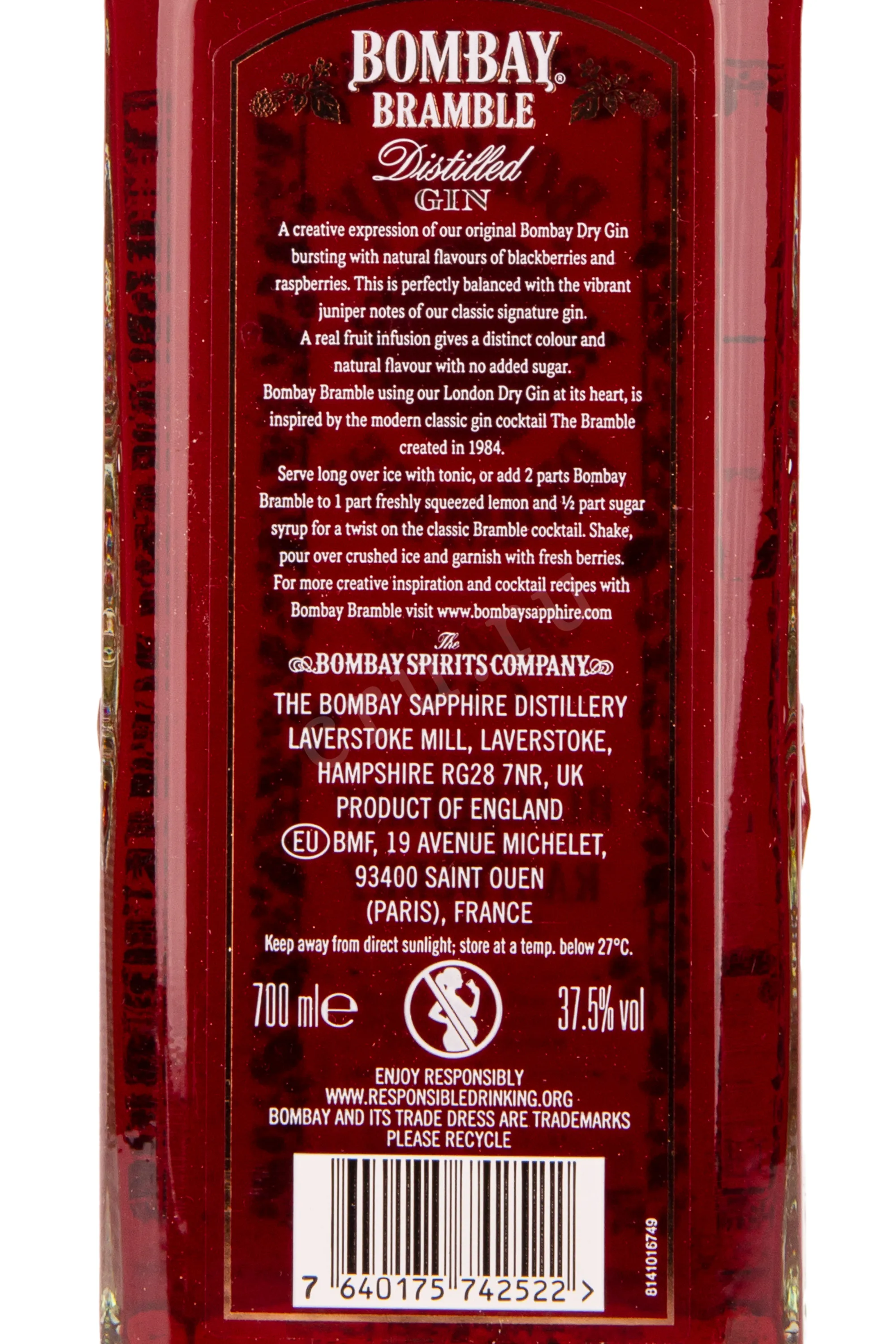 Джин Bombay Bramble 0.7 л был создан с использованием традиционной английской технологии перегонки в медных кубах Carterhead. Основой напитка стали спелые ежевика и малина, собранные вручную в холмистых районах Англии и Шотландии с умеренно прохладным климатом и плодородными почвами. Ягоды проходили тщательный отбор, после чего подверглись особой методике паровой инфузии, позволившей сохранить природную свежесть и естественные оттенки вкуса. В конце процесса изготовления ягодный настой смешали с классическим джином Bombay Sapphire в строгих пропорциях.