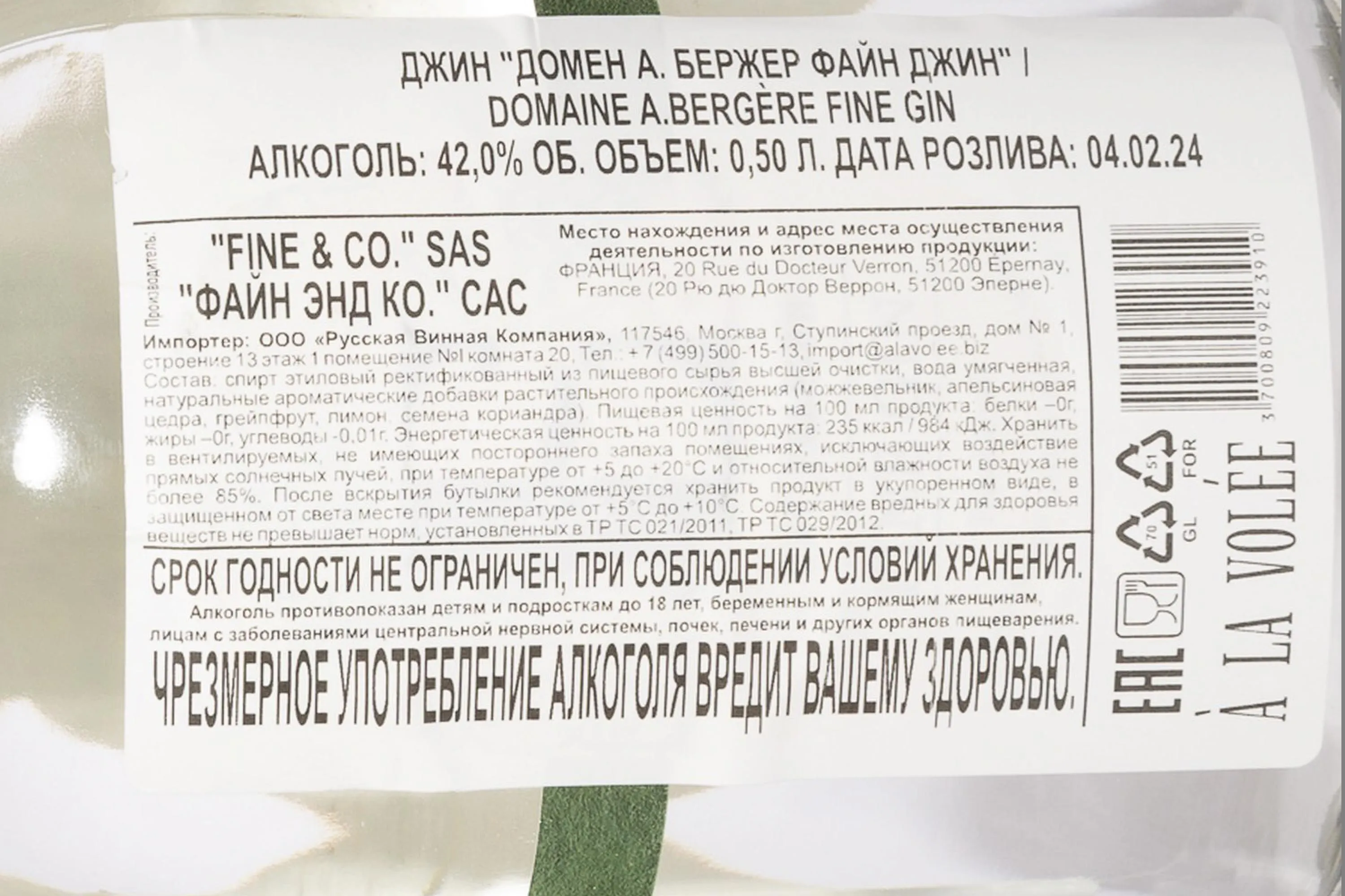 Джин A. Bergere Fine Gin 0,5 л — изысканный французский напиток, созданный Домом шампанских вин А.Бержер, который известен своими традициями и высоким качеством. Алкоголь производится малыми партиями с использованием отборных ботанических ингредиентов и чистейшего зернового спирта. В составе — можжевельник, кориандр, цедра цитрусов и редкие травы, собранные во Франции. Дистилляция проходит в медных кубах, что позволяет сохранить свежесть и натуральный аромат растений. Напиток отличается элегантным, гармоничным стилем, отражающим тонкий баланс между классикой и современным подходом.
