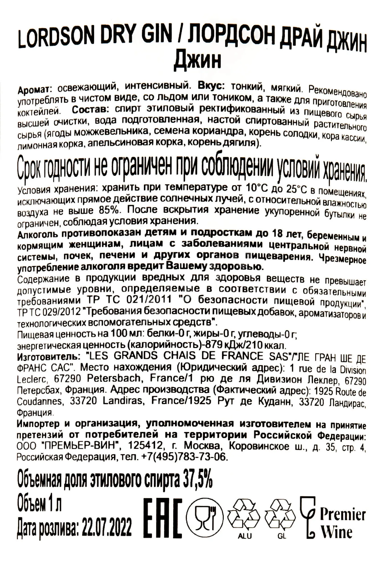 Джин Lordson Dry 1 л был создан с использованием традиционного метода перегонки в медных кубах, благодаря чему напиток приобрел утонченную чистоту и мягкость вкуса. Особое внимание уделялось выбору растительных компонентов, включая ягоды можжевельника, кориандр и цедру цитрусовых, что позволило получить сбалансированный и освежающий алкоголь. Тщательно контролируемый процесс выдержки и фильтрации обеспечил кристальную прозрачность и подчеркнул многогранность ароматического букета.