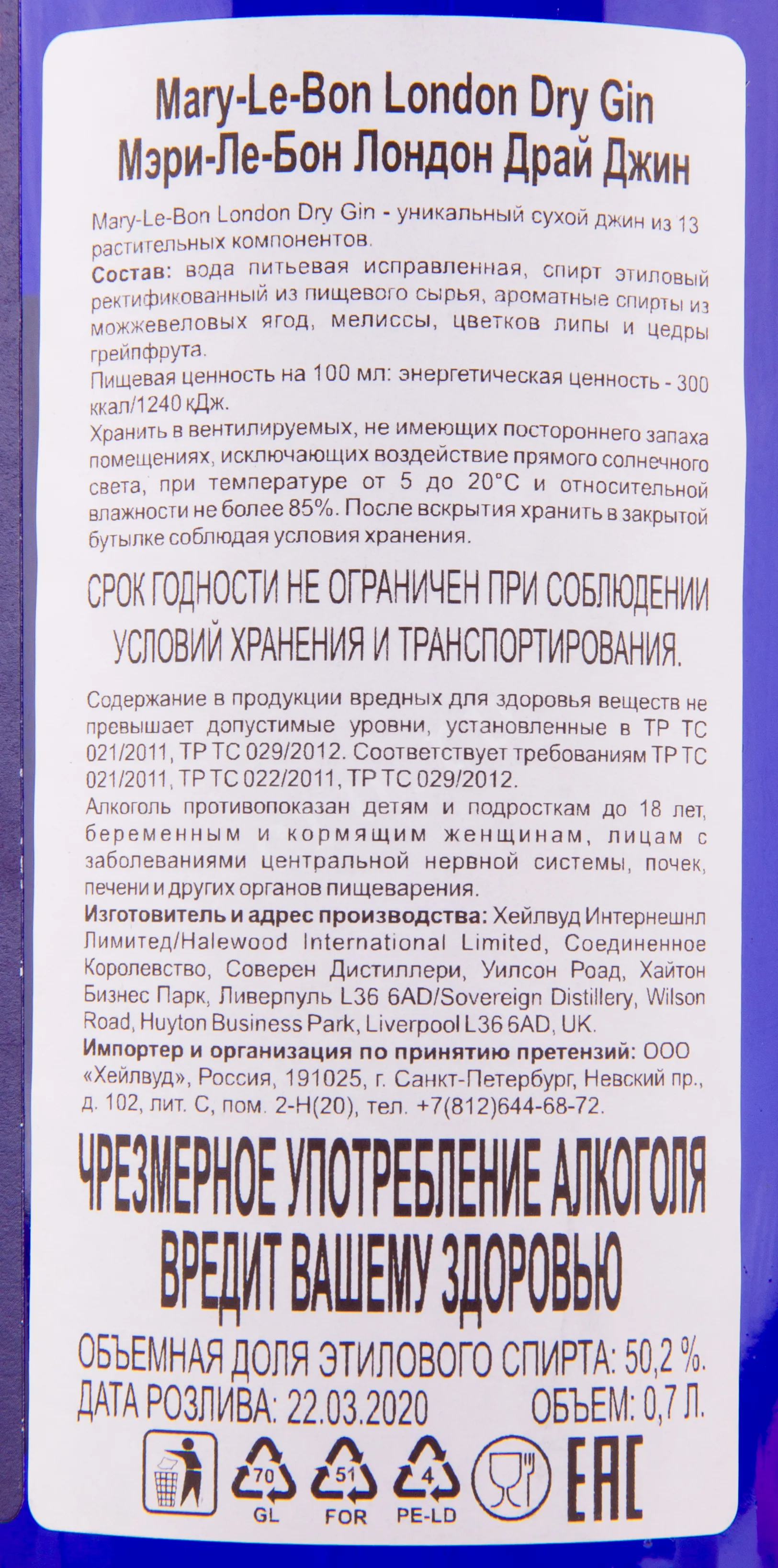 Mary-Le-Bone London Dry Gin 0.7 л купить - Джин Мэри-Ле-Бон Лондон Драй цена в магазине КРЮ ПРОФИг. Москва, ул. Профсоюзная, д. 16/1010:00-22:00 Ежедневно+7 (495) 920-20-02info@cru.ru