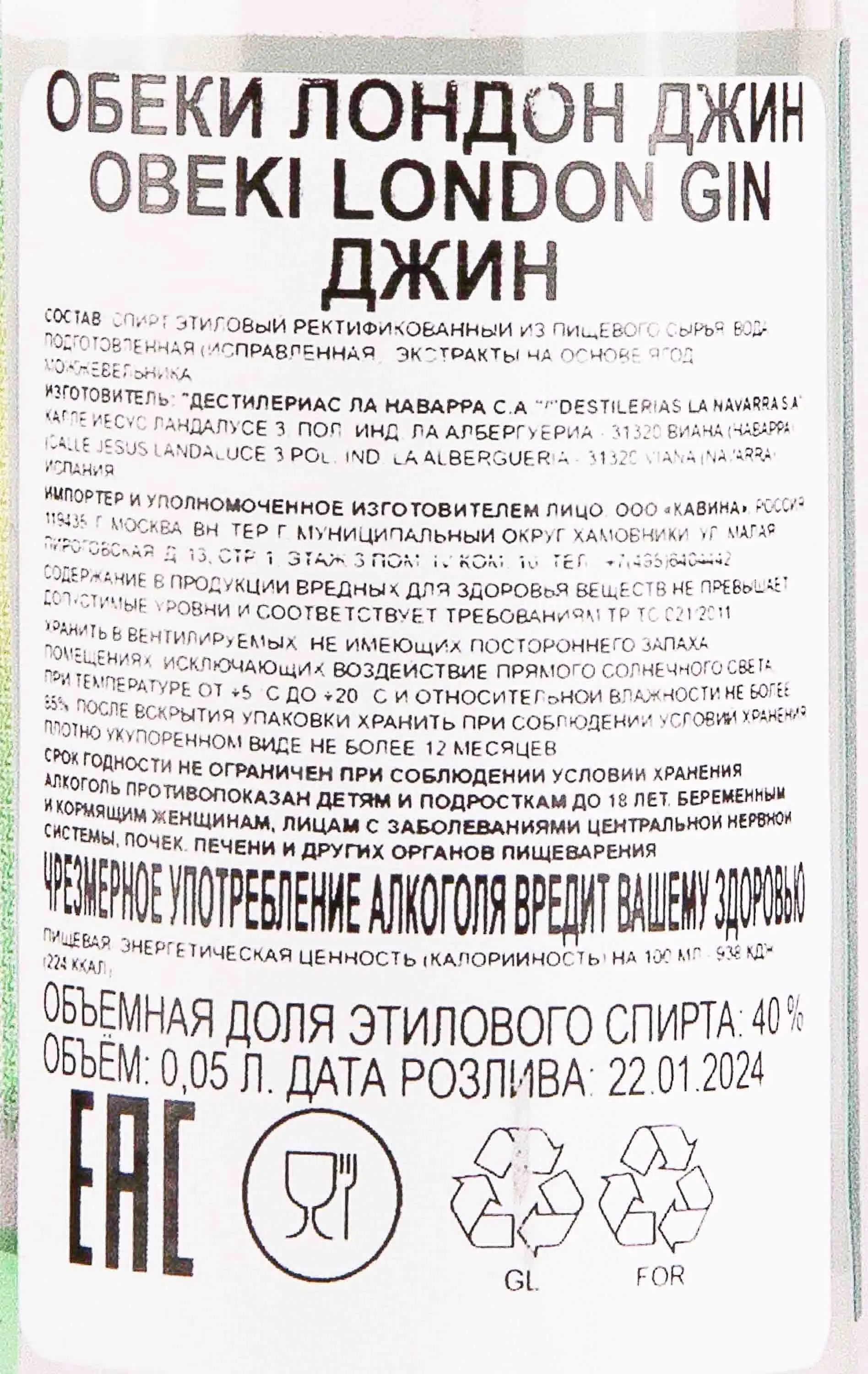 Obeki London Gin 0.05 л купить - Джин Обеки Лондон Джин цена в магазине КРЮ ПРОФИ
