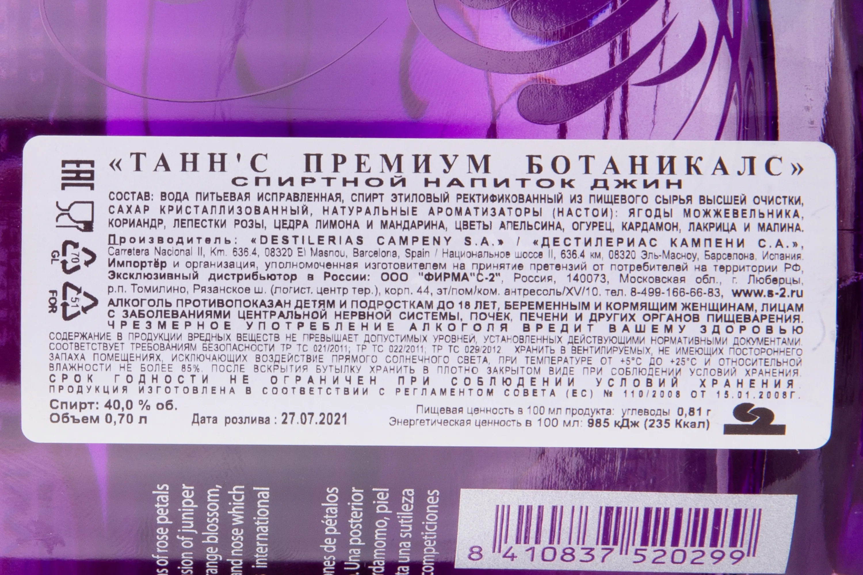 Tann's Premium Gin Botanicals 0.7 л купить - Джин Таннс Премиум Ботаникалс цена в магазине КРЮ ПРОФИ