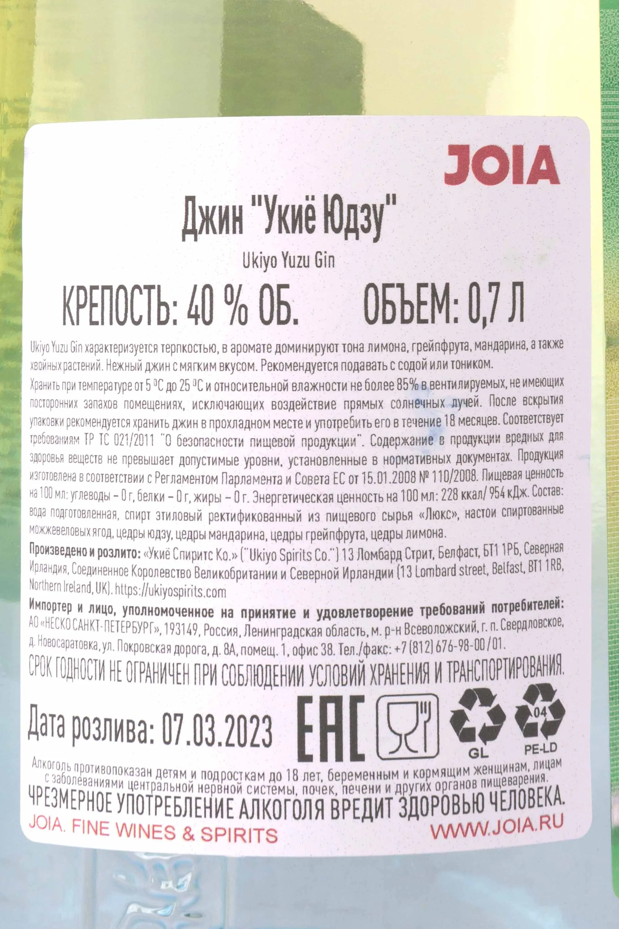 Ukiyo Yuzu 0.7 л купить - Джин Укиё Юдзу цена в магазине КРЮ ПРОФИ