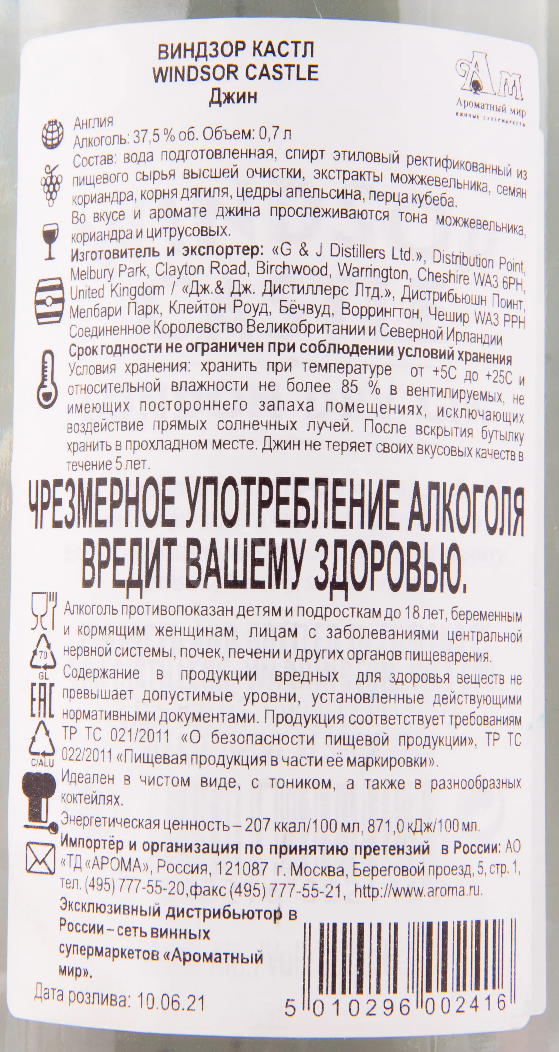 Windsor Castle 0.7 л купить - Джин Виндзор Кастл цена в магазине КРЮ ПРОФИг. Москва, ул. Профсоюзная, д. 16/1010:00-22:00 Ежедневно+7 (495) 920-20-02info@cru.ru